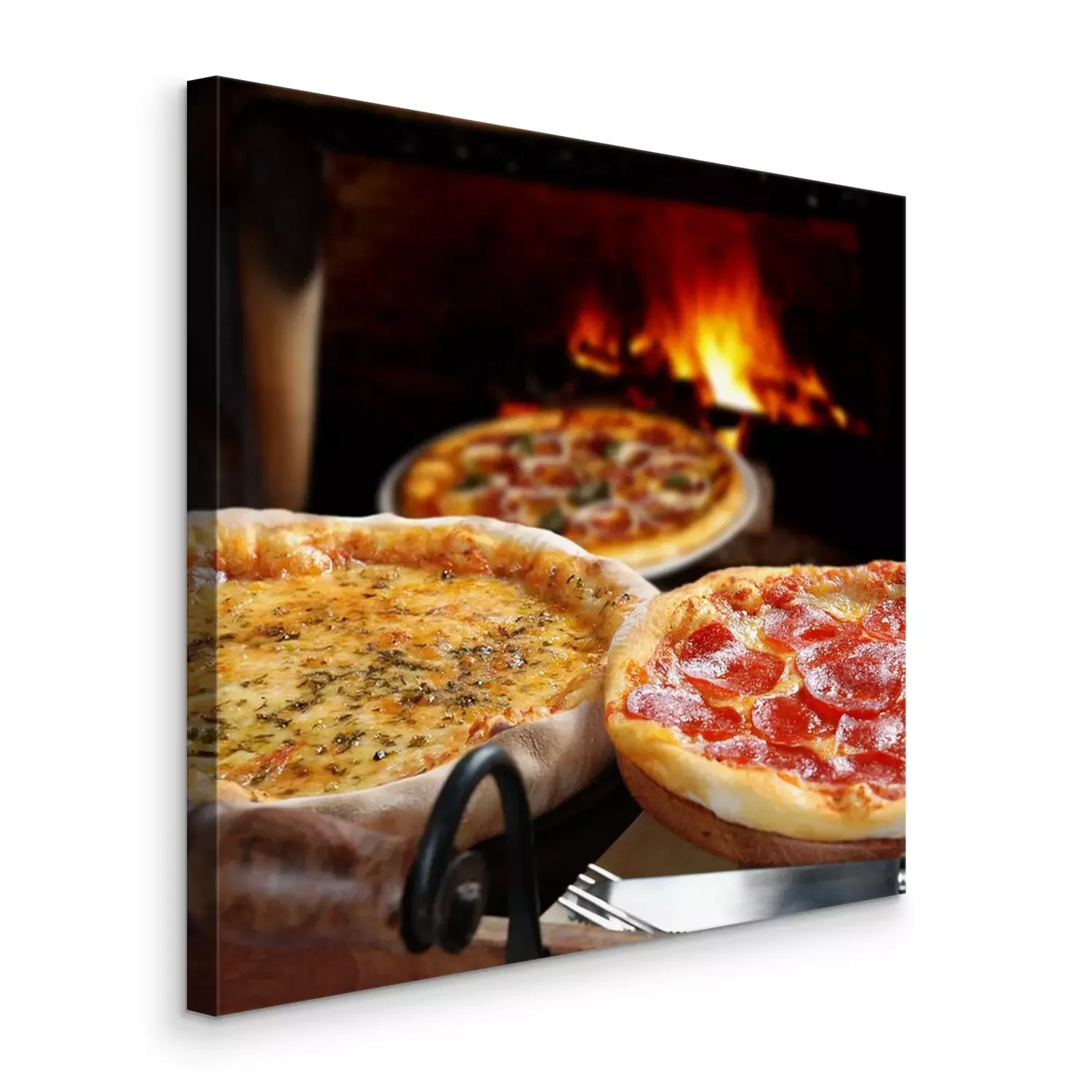 Bild: Drei Pizzas vor dem Hintergrund des Ofens