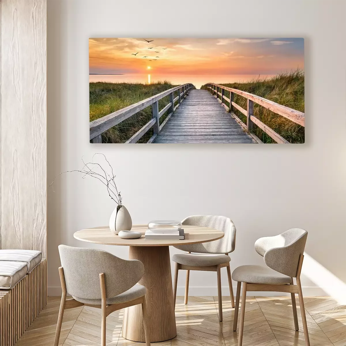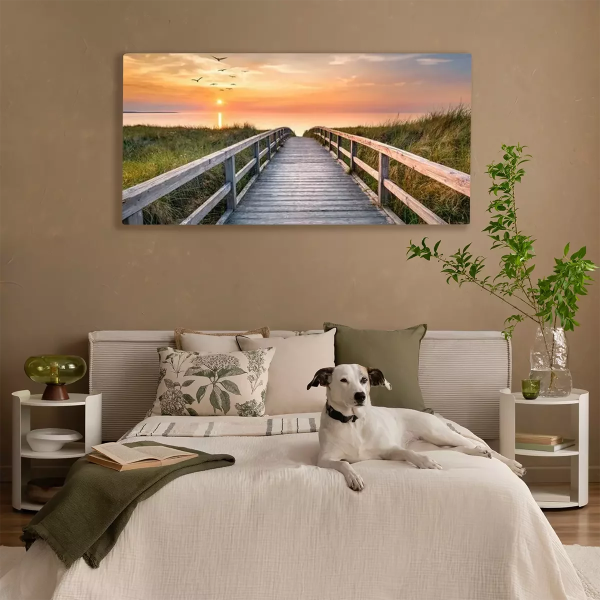 Das Motiv wird auf eine qualitativ hochwertige Leinwand gedruckt, die auf einen Blendrahmen gezogen wird. Da der Aufdruck die Seitenkanten bedeckt, muss das Bild nicht zusätzlich eingerahmt werden. Wir empfehlen außerdem Kompositionen aus mehreren Bildern, die ein harmonisches Ganzes bilden.