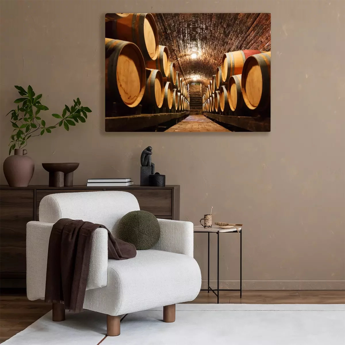Keller aus Ziegeln mit Reihen von Holzfässern