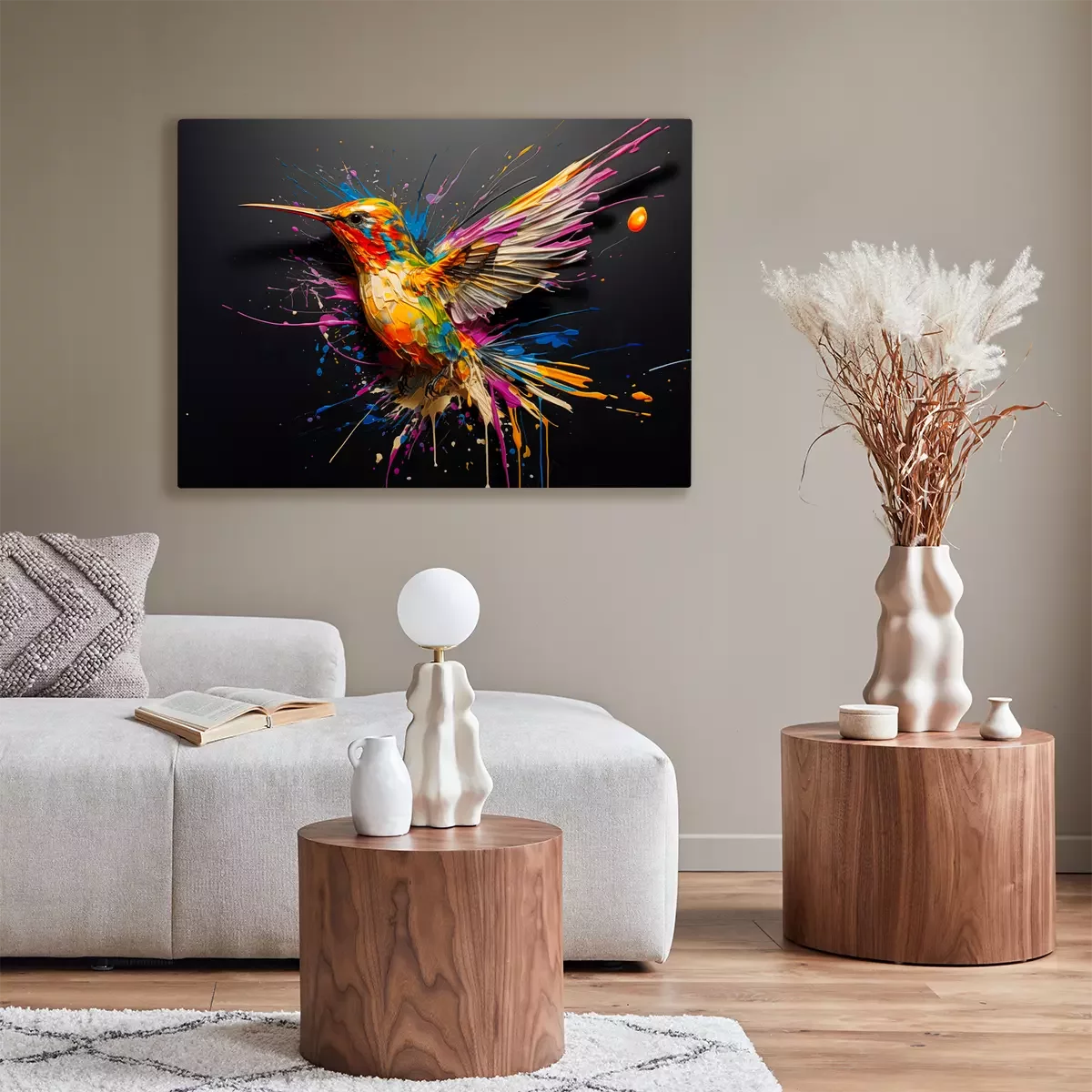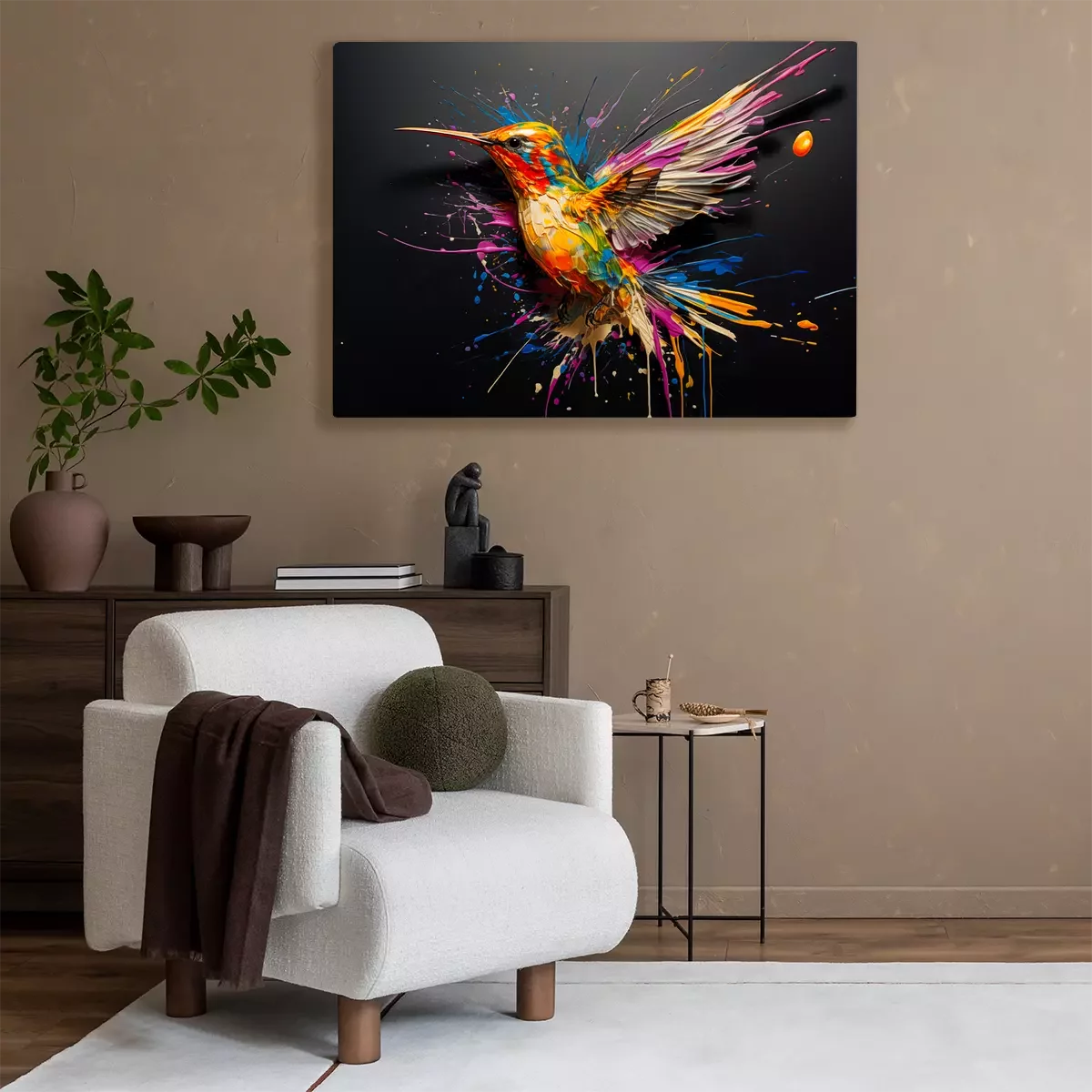 Ein abstrakter kolibri mit einer intensiven farbpalette