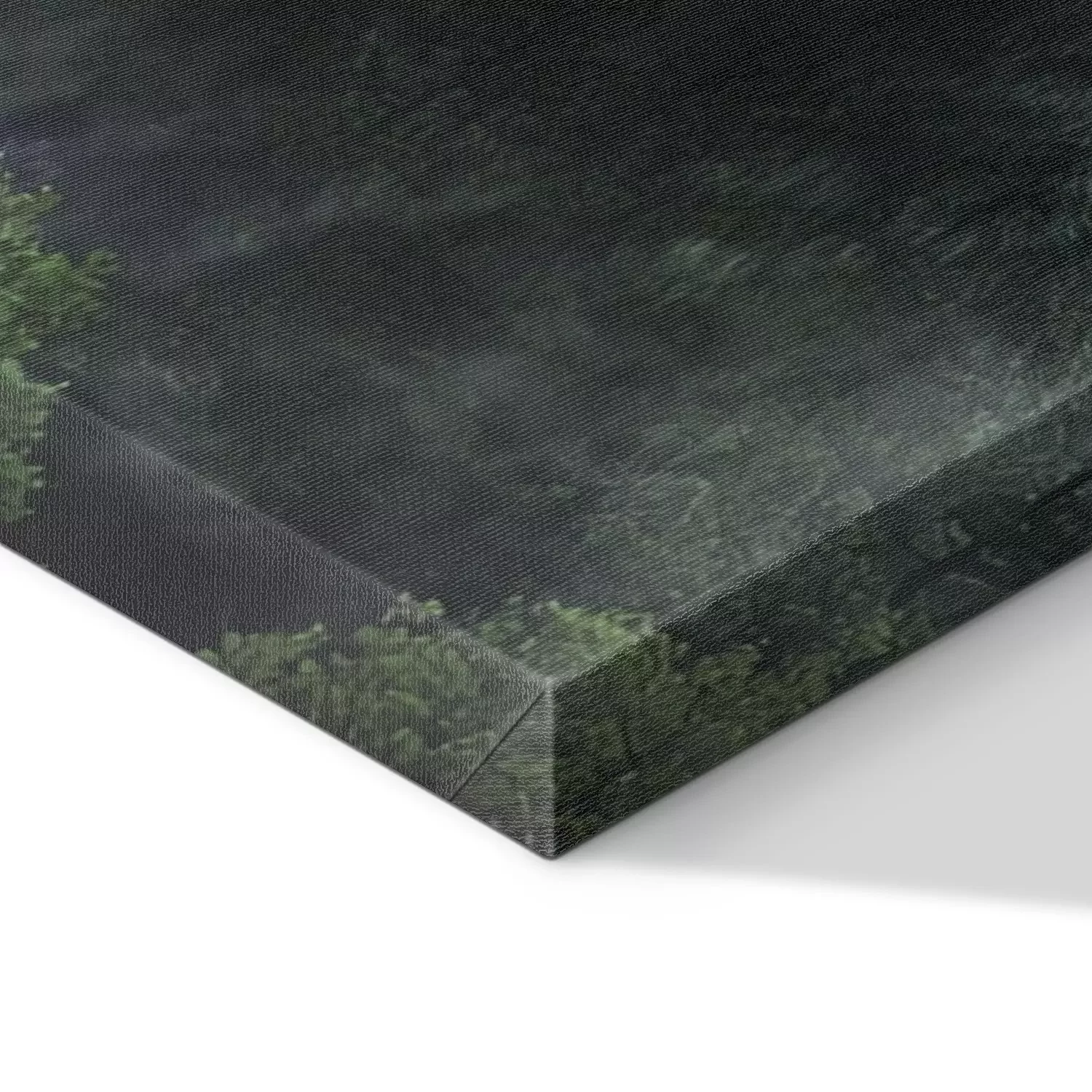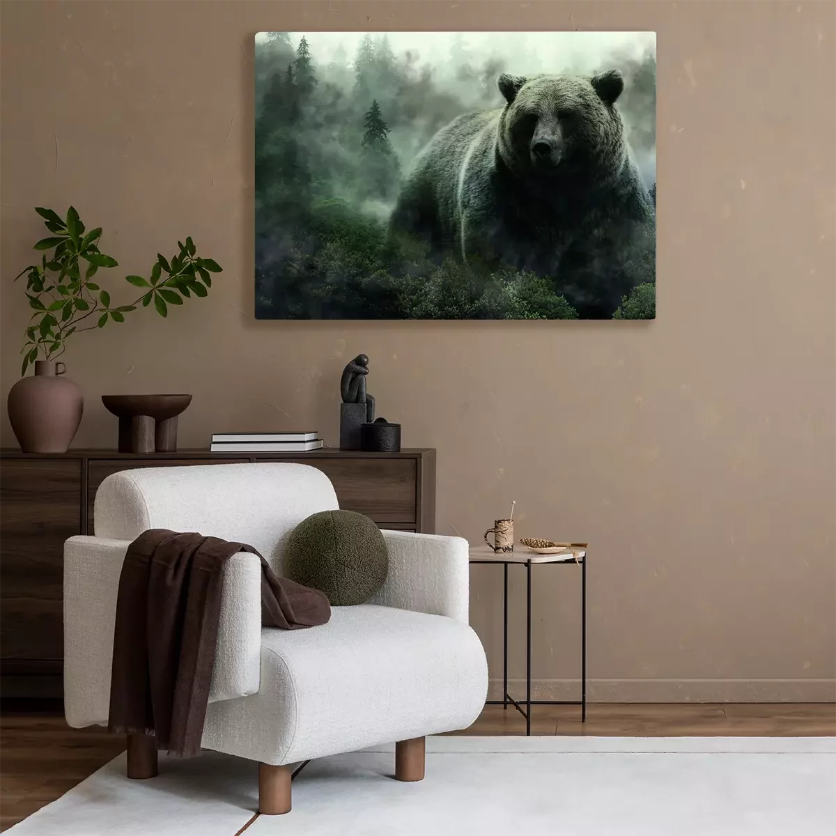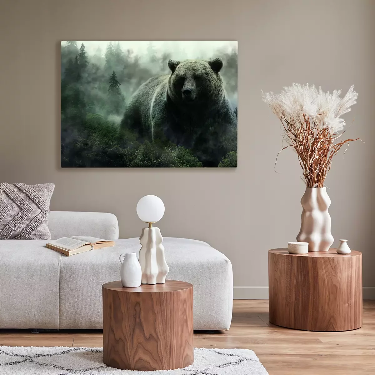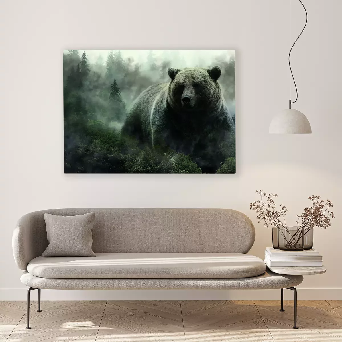 Ein ausgewachsener bär in einer geheimnisvollen, nebligen waldlandschaft