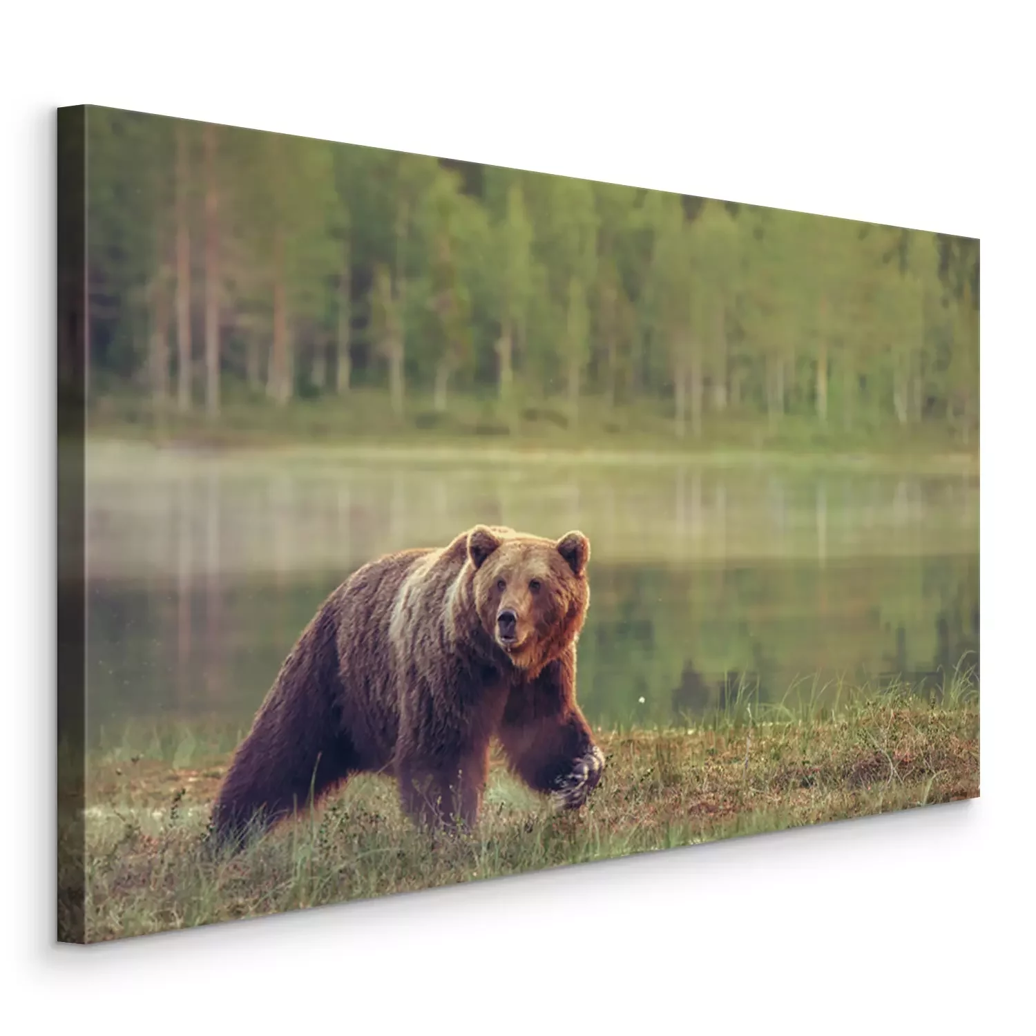 Bild Ein Bär vor der Kulisse einer See- und Waldlandschaft