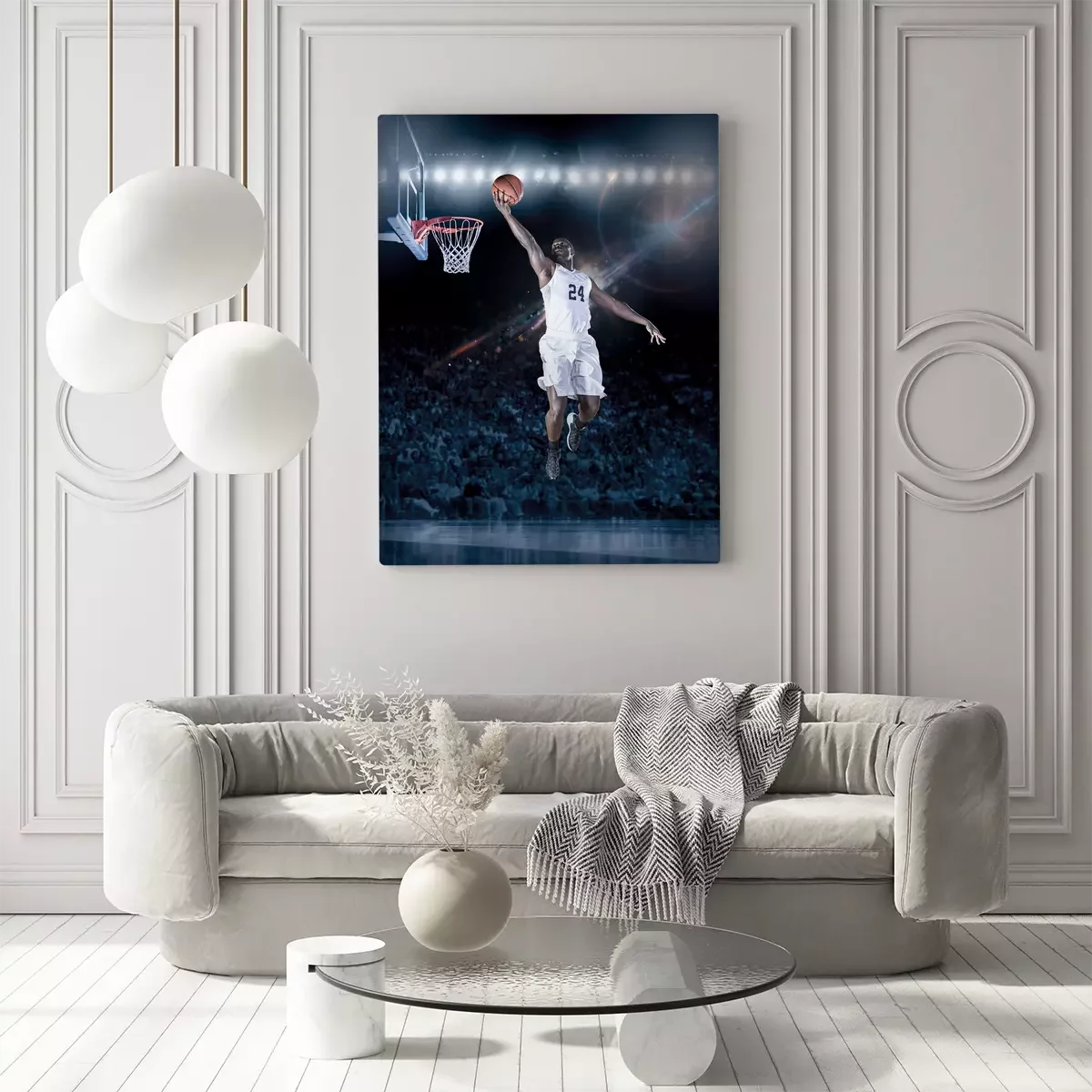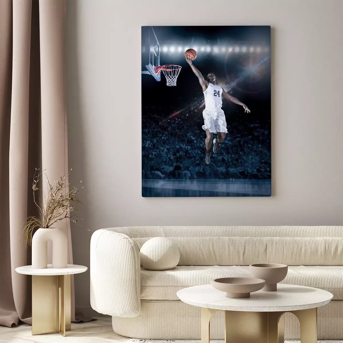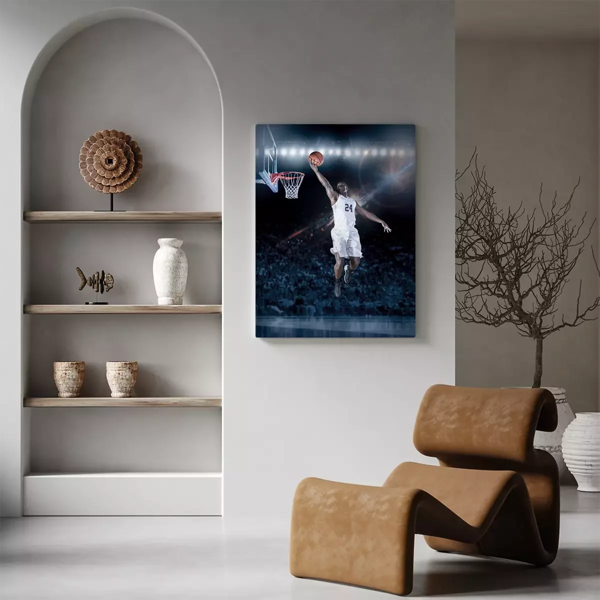 Ein basketballspieler beim sprungwurf unter dem korb