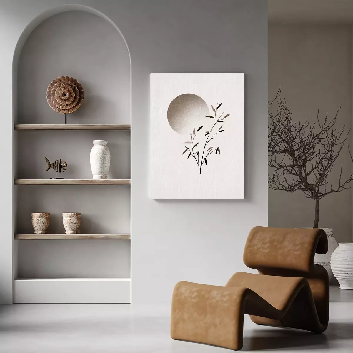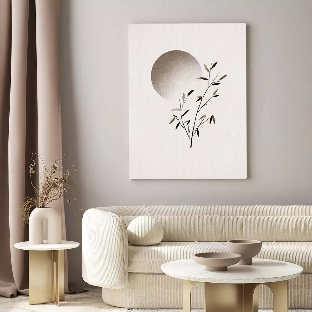 Ein beblätterter zweig auf kreisförmigem hintergrund