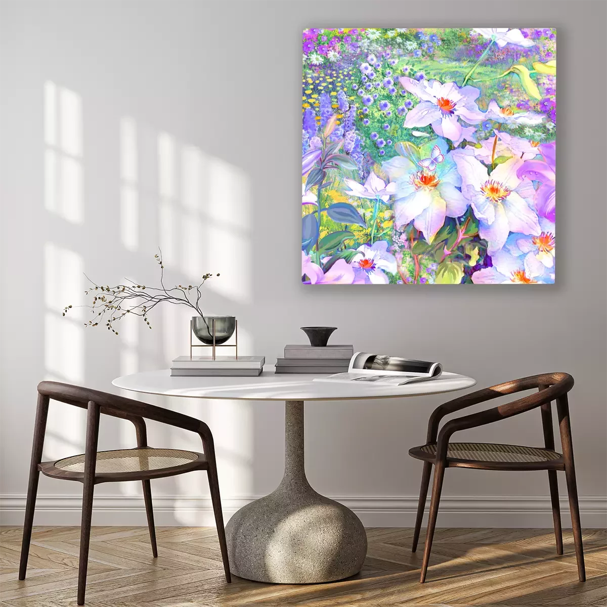 Das Motiv wird auf eine qualitativ hochwertige Leinwand gedruckt, die auf einen Blendrahmen gezogen wird. Da der Aufdruck die Seitenkanten bedeckt, muss das Bild nicht zusätzlich eingerahmt werden. Wir empfehlen außerdem Kompositionen aus mehreren Bildern, die ein harmonisches Ganzes bilden.