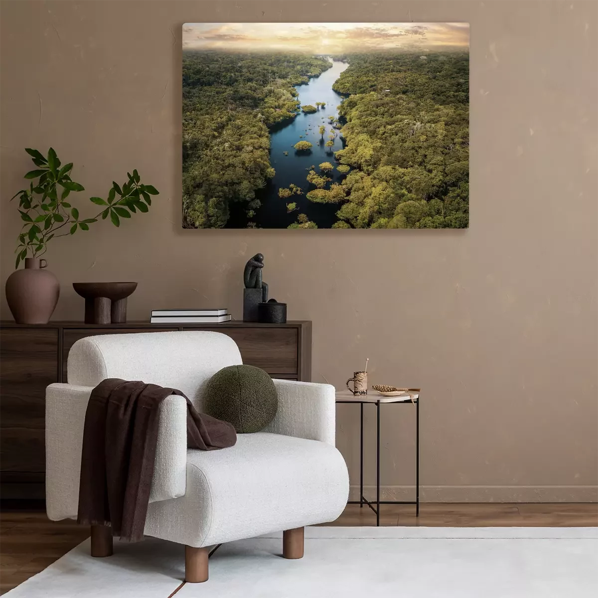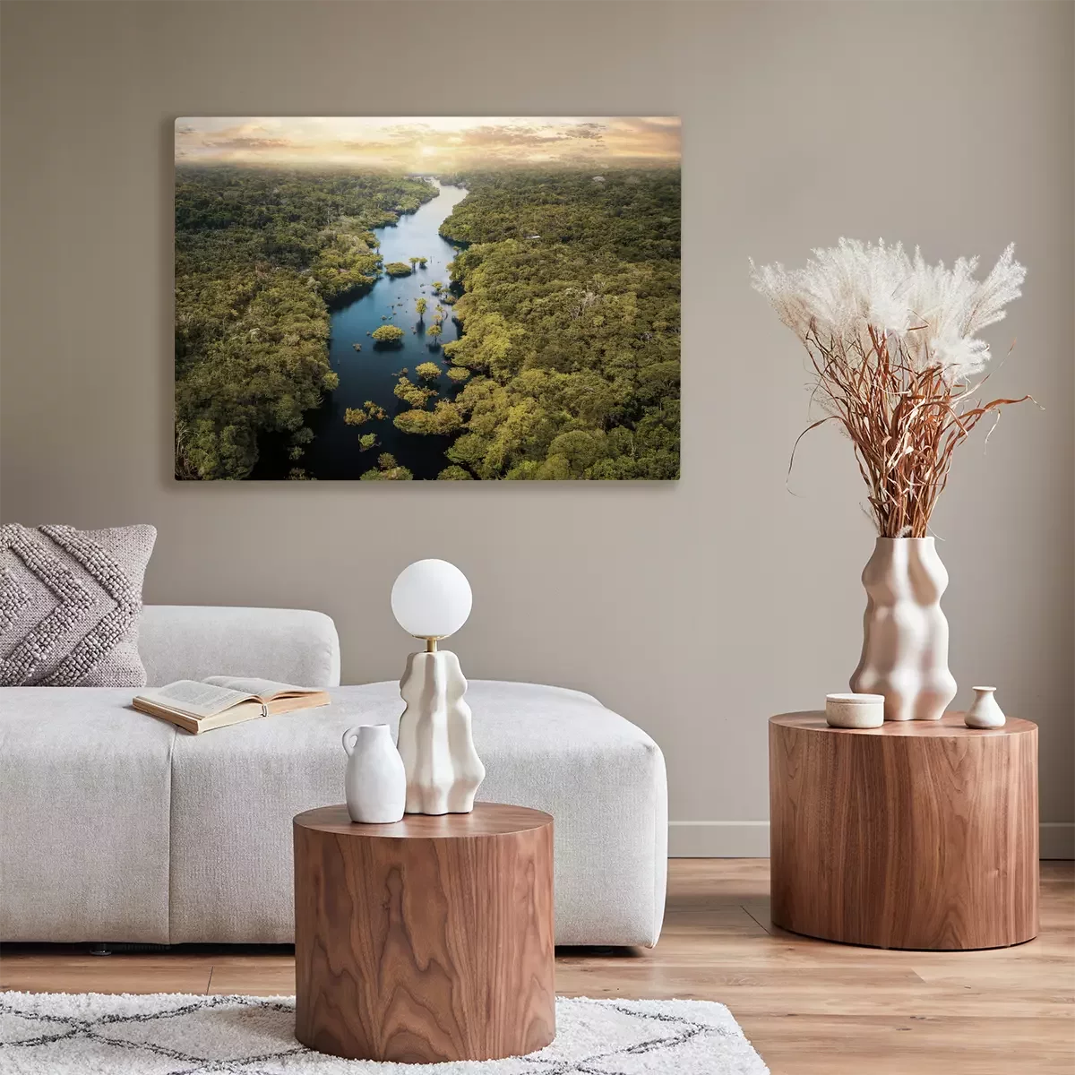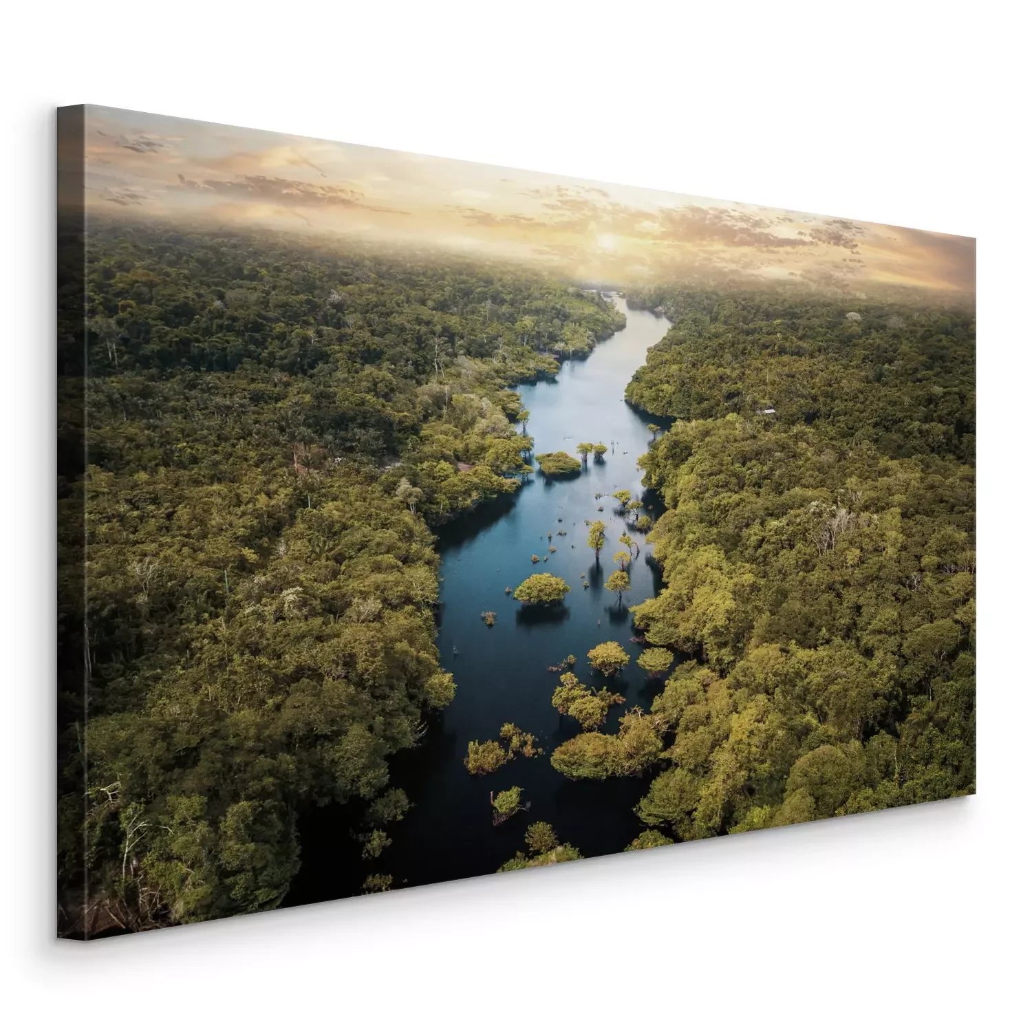 Ein breiter flusslauf in einem tropischen wald