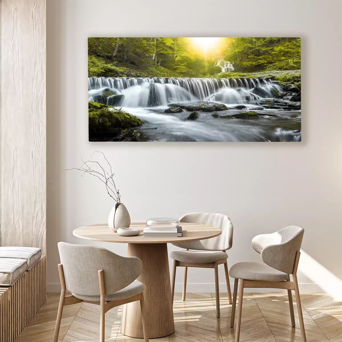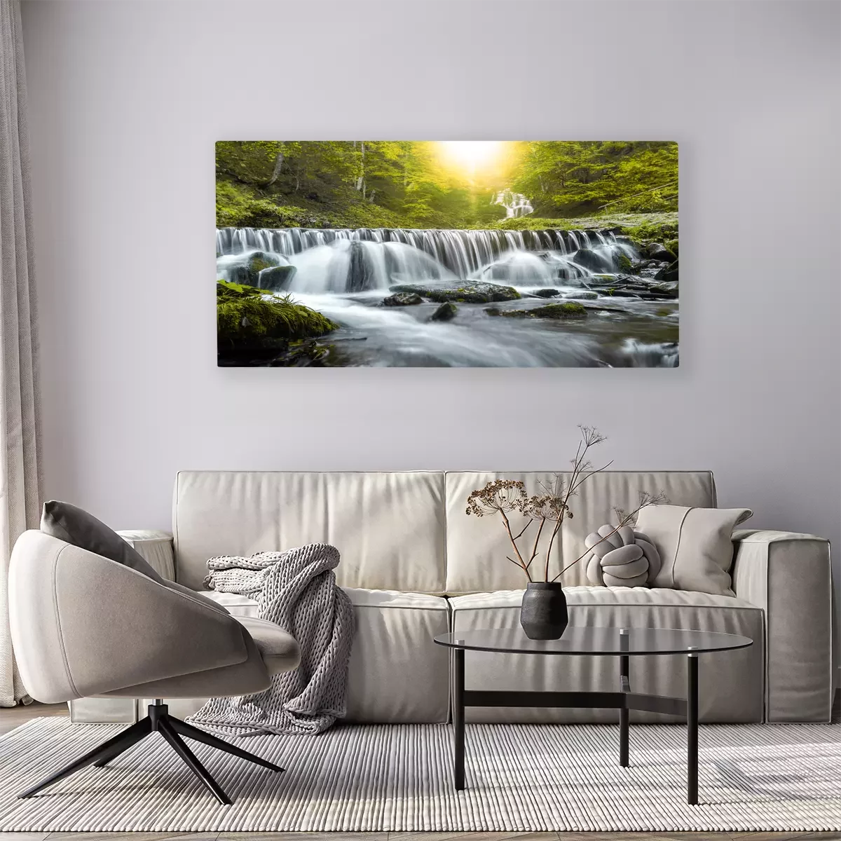 Ein breiter wasserfall mit felsen und steinen