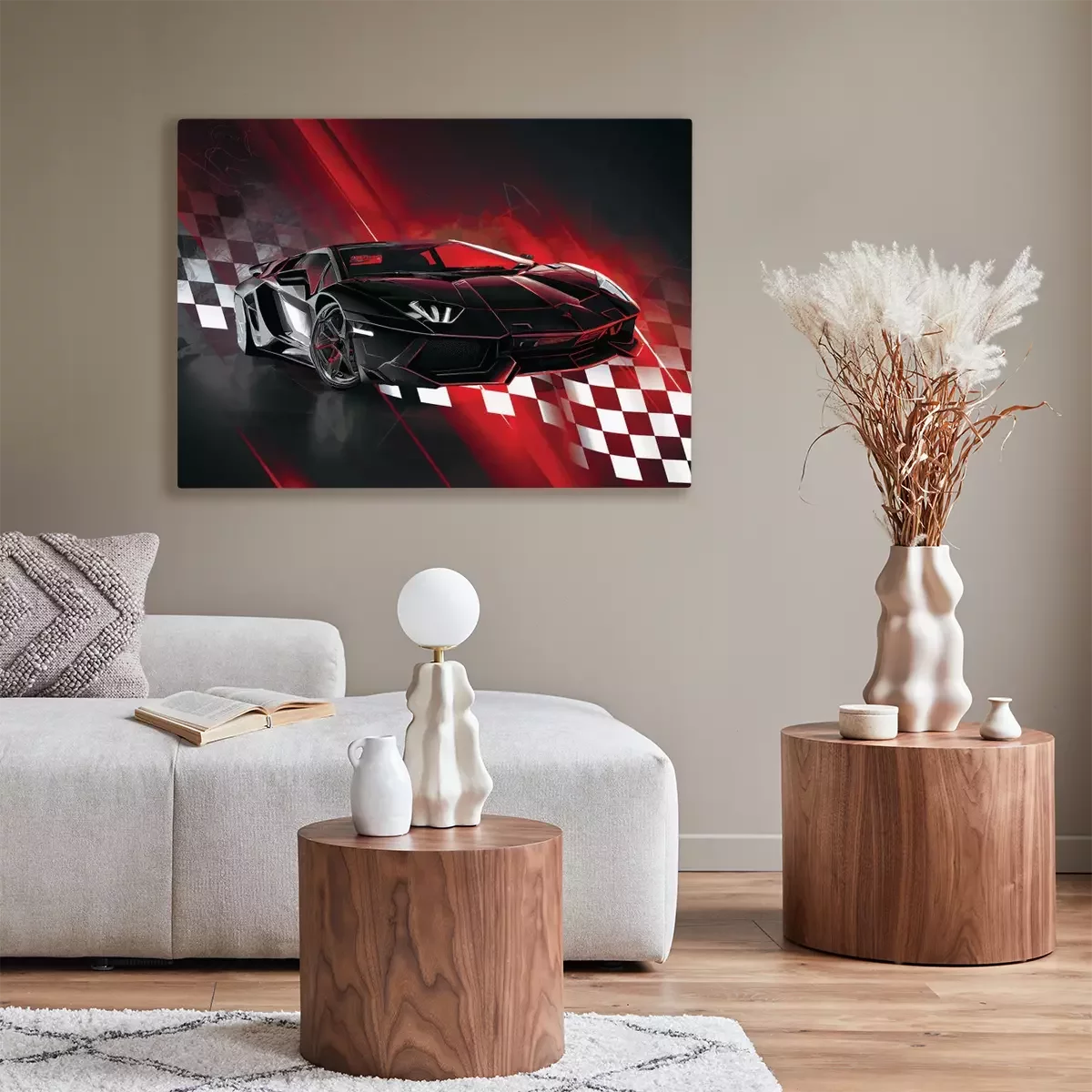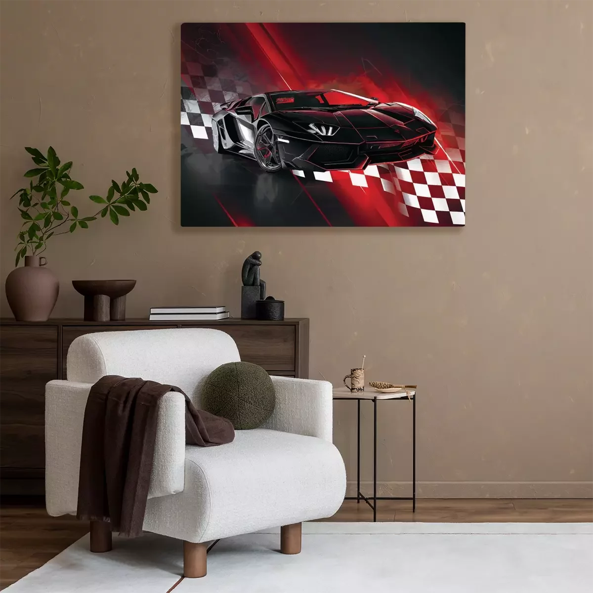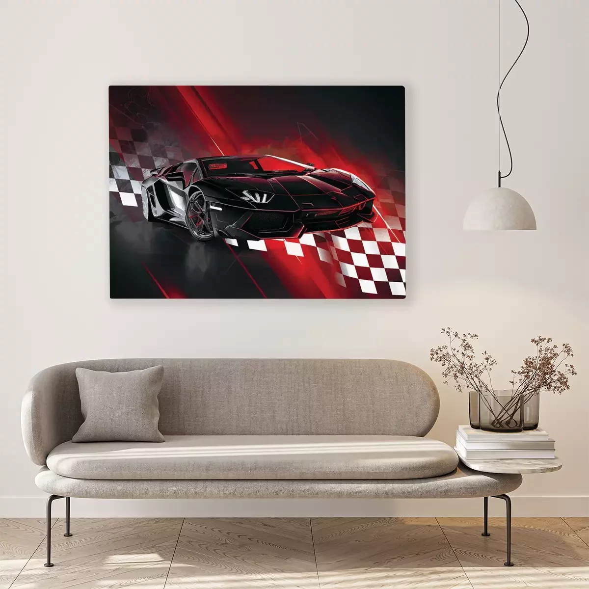 Ein dynamischer sportwagen mit einer flagge im hintergrund