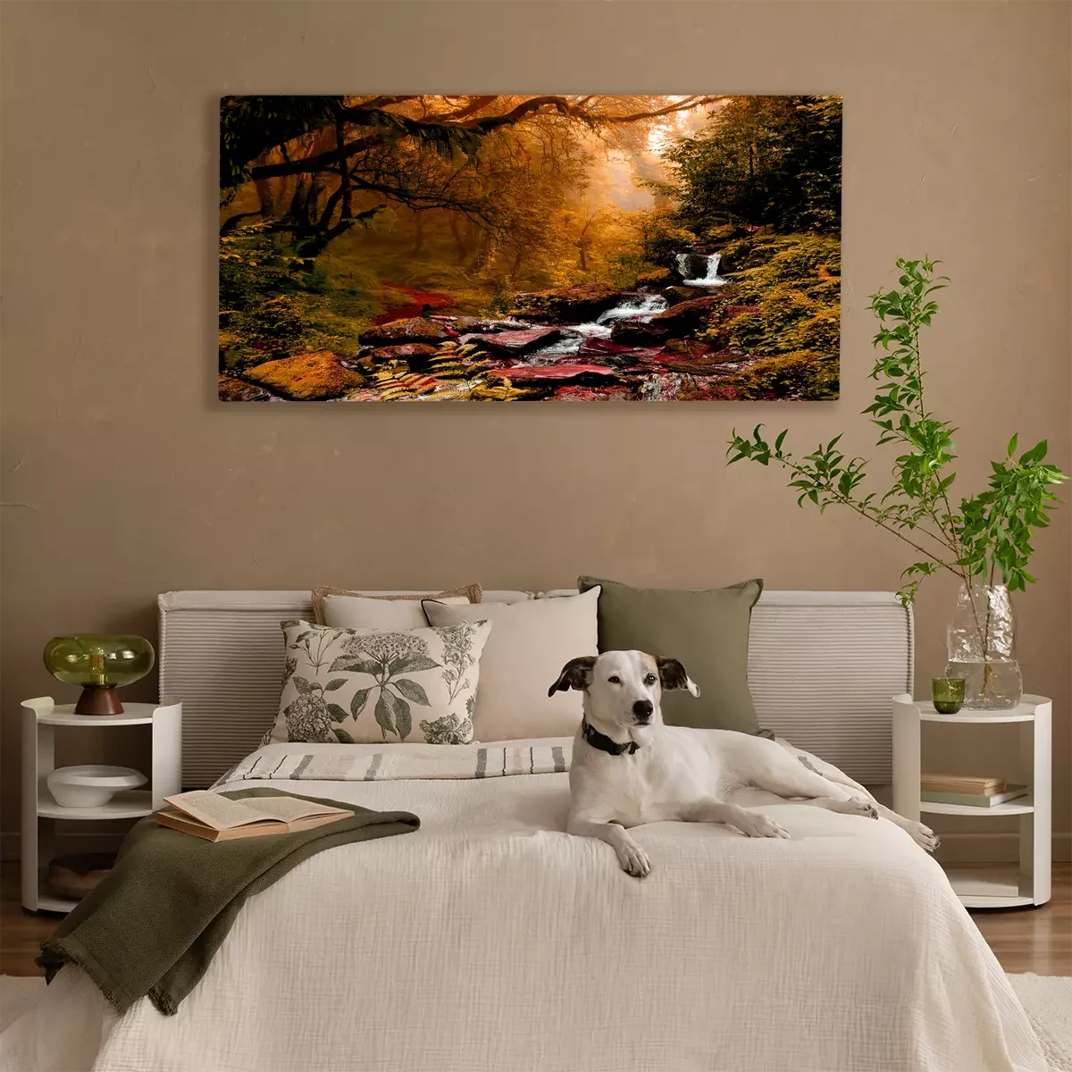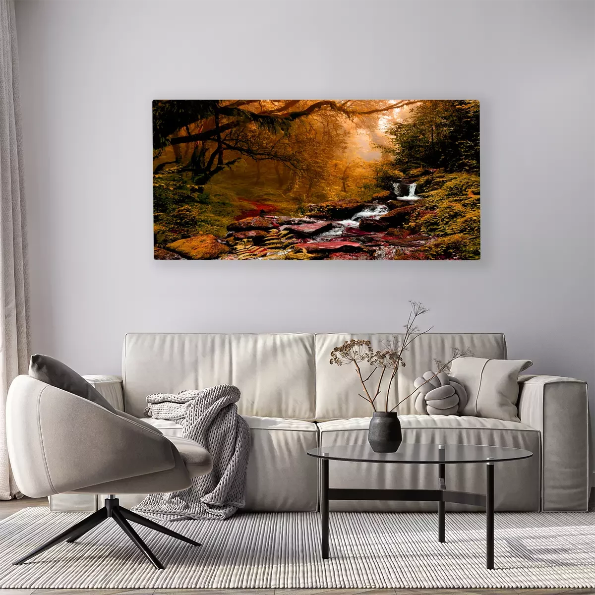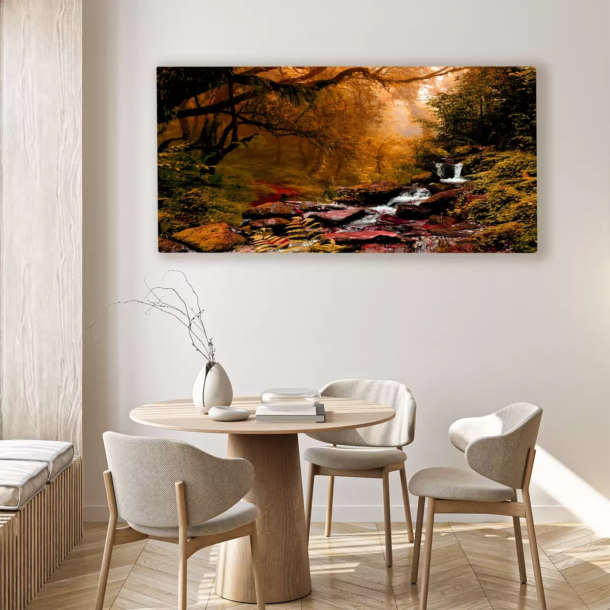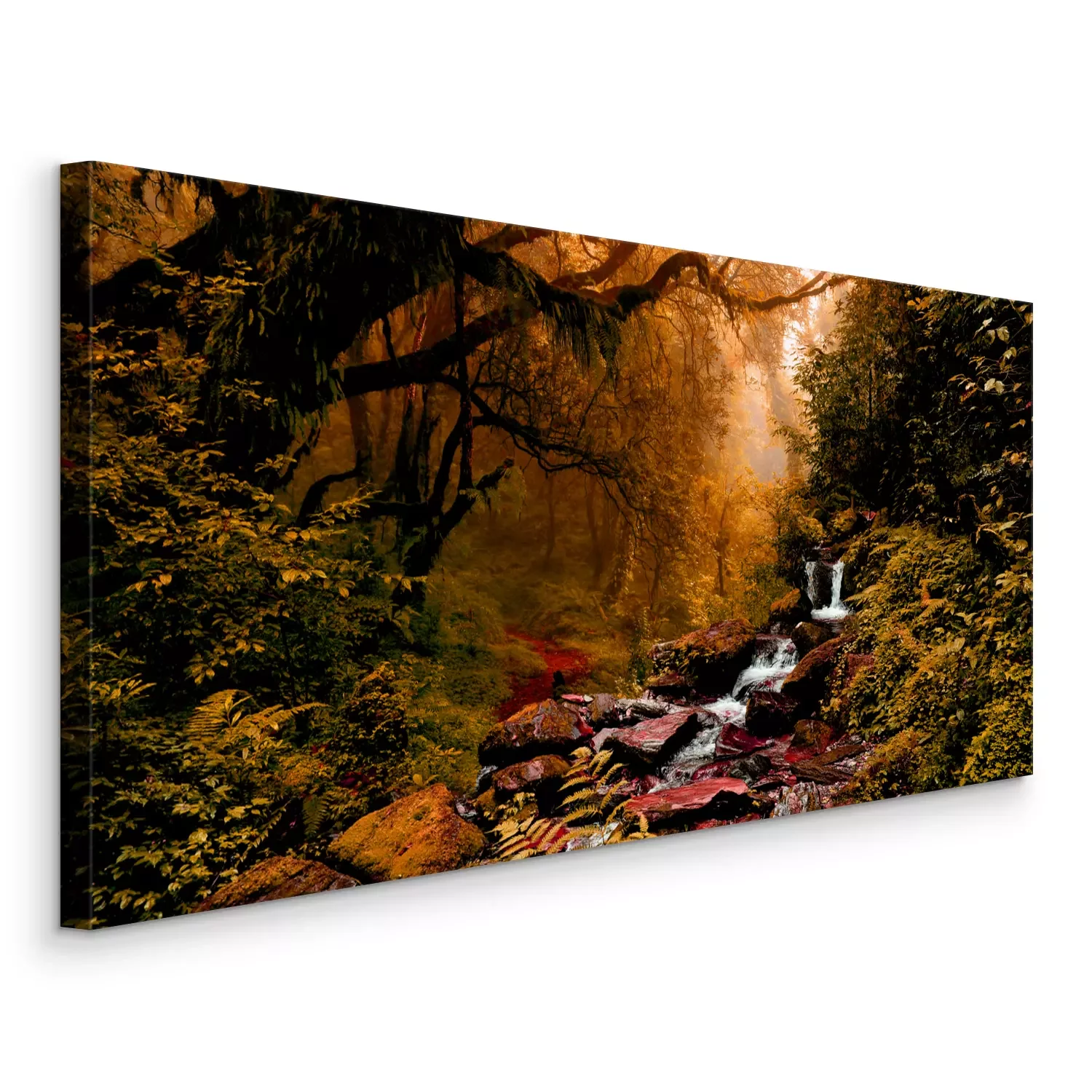 Ein kleiner wasserfall in einem dichten herbstwald