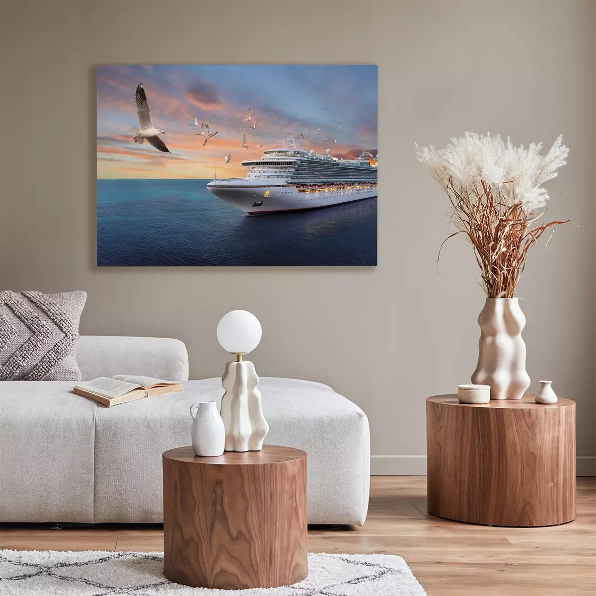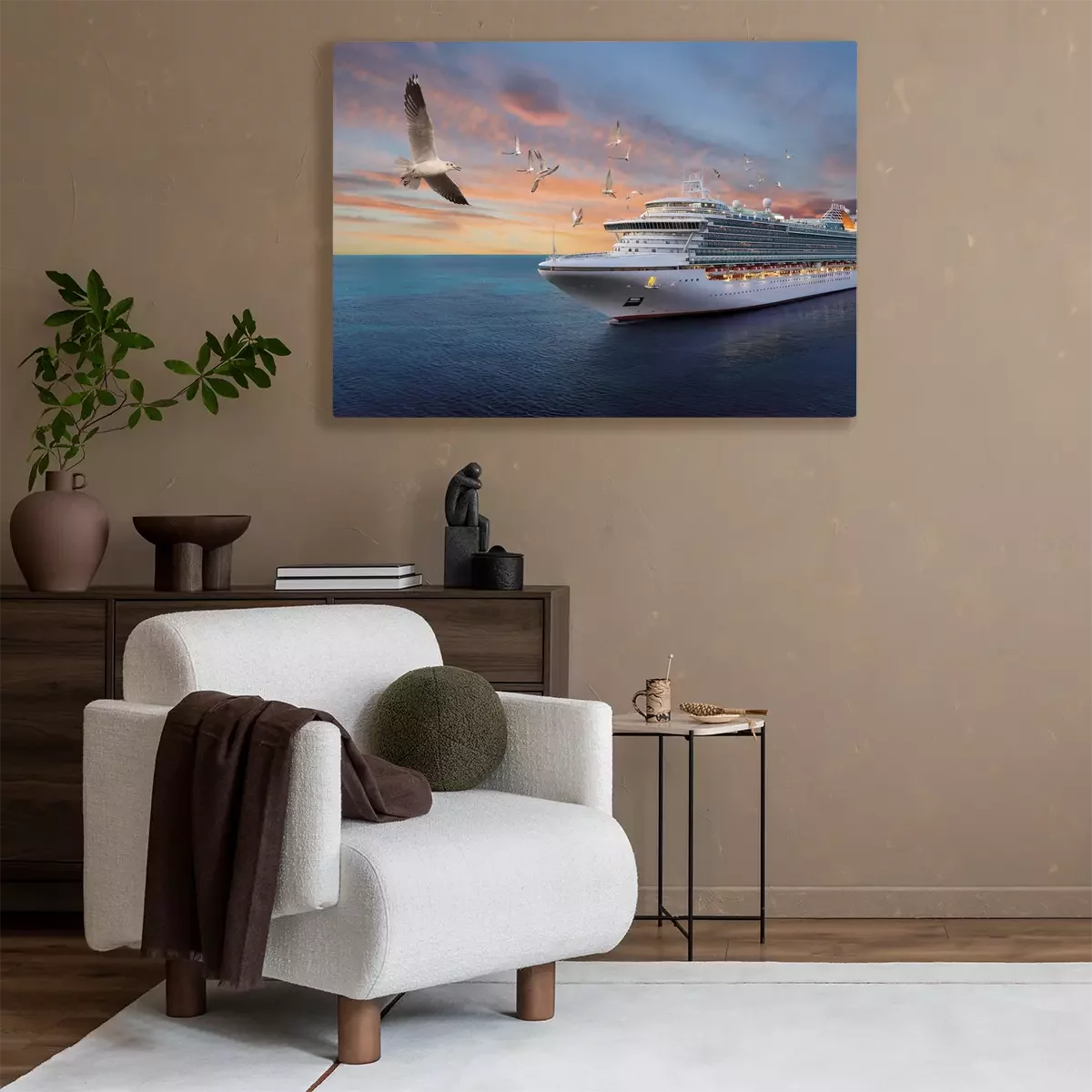 Ein kreuzfahrtschiff im licht der untergehenden sonne