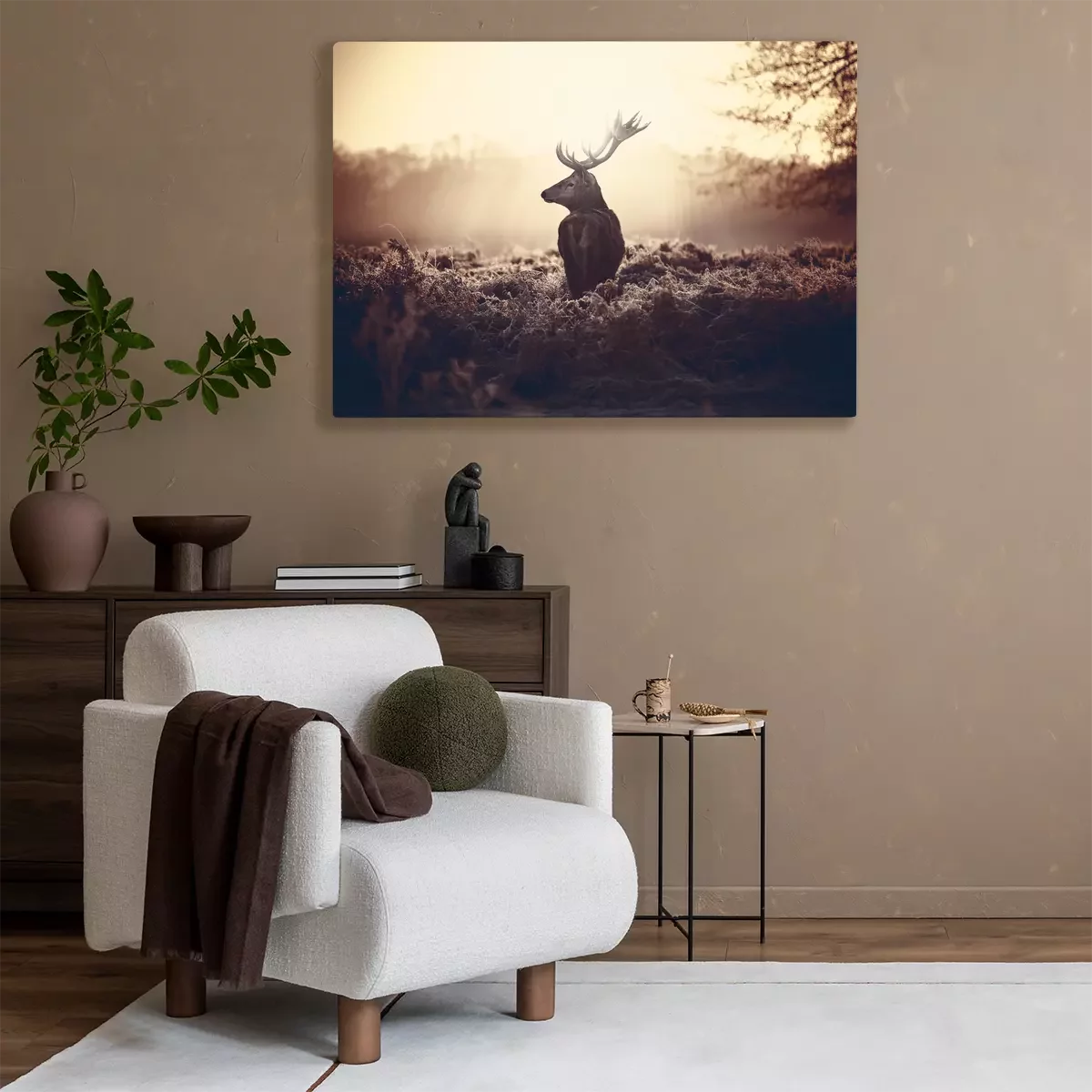Ein männlicher hirsch vor dem hintergrund der morgendämmerung
