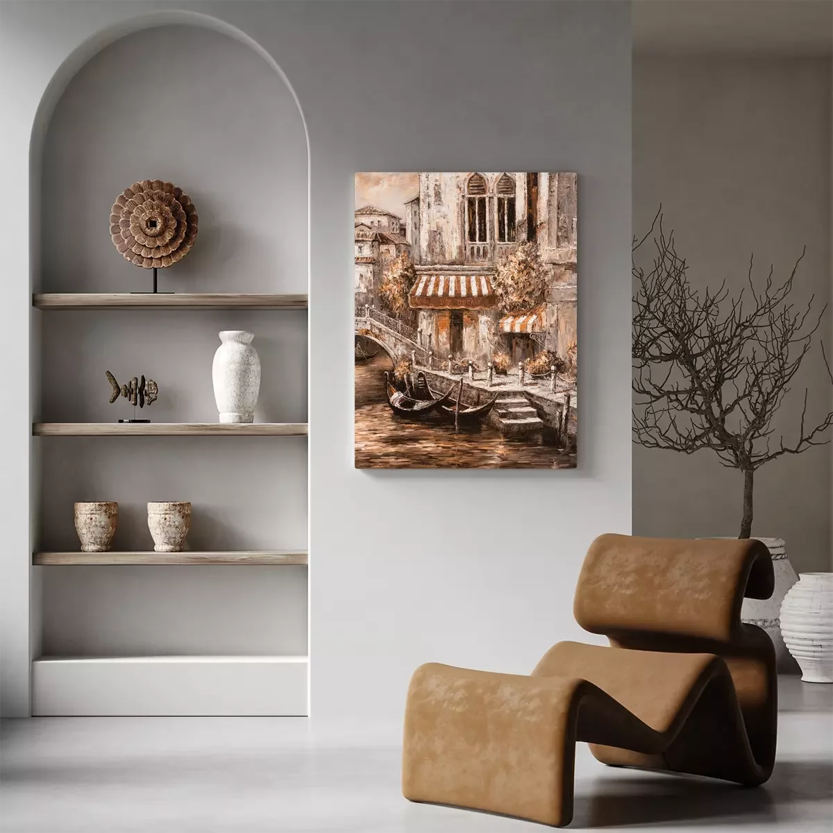 Ein mietshaus am kanal mit blick auf die gondeln