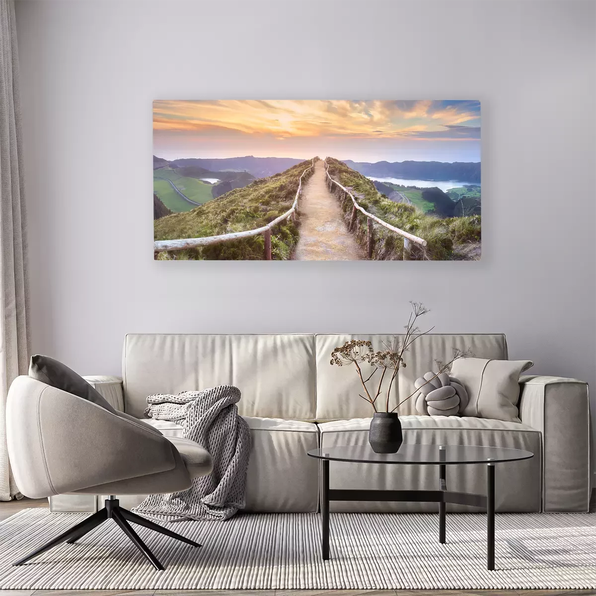Ein mit geländern versehener weg in den bergen