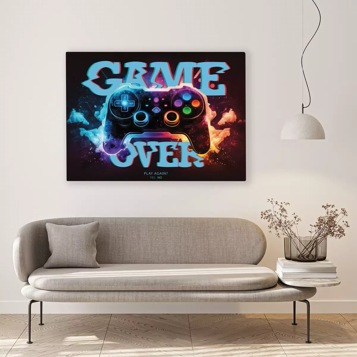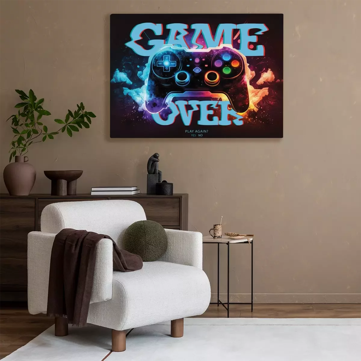 Ein mit leuchtenden neonakzenten verziertes gamepad