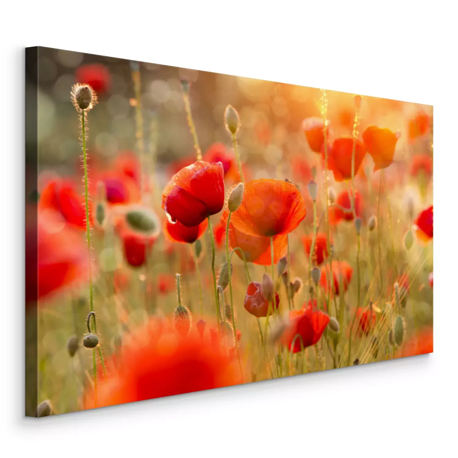 Bild Ein Mohnfeld in der Sonne vor unscharfem Hintergrund