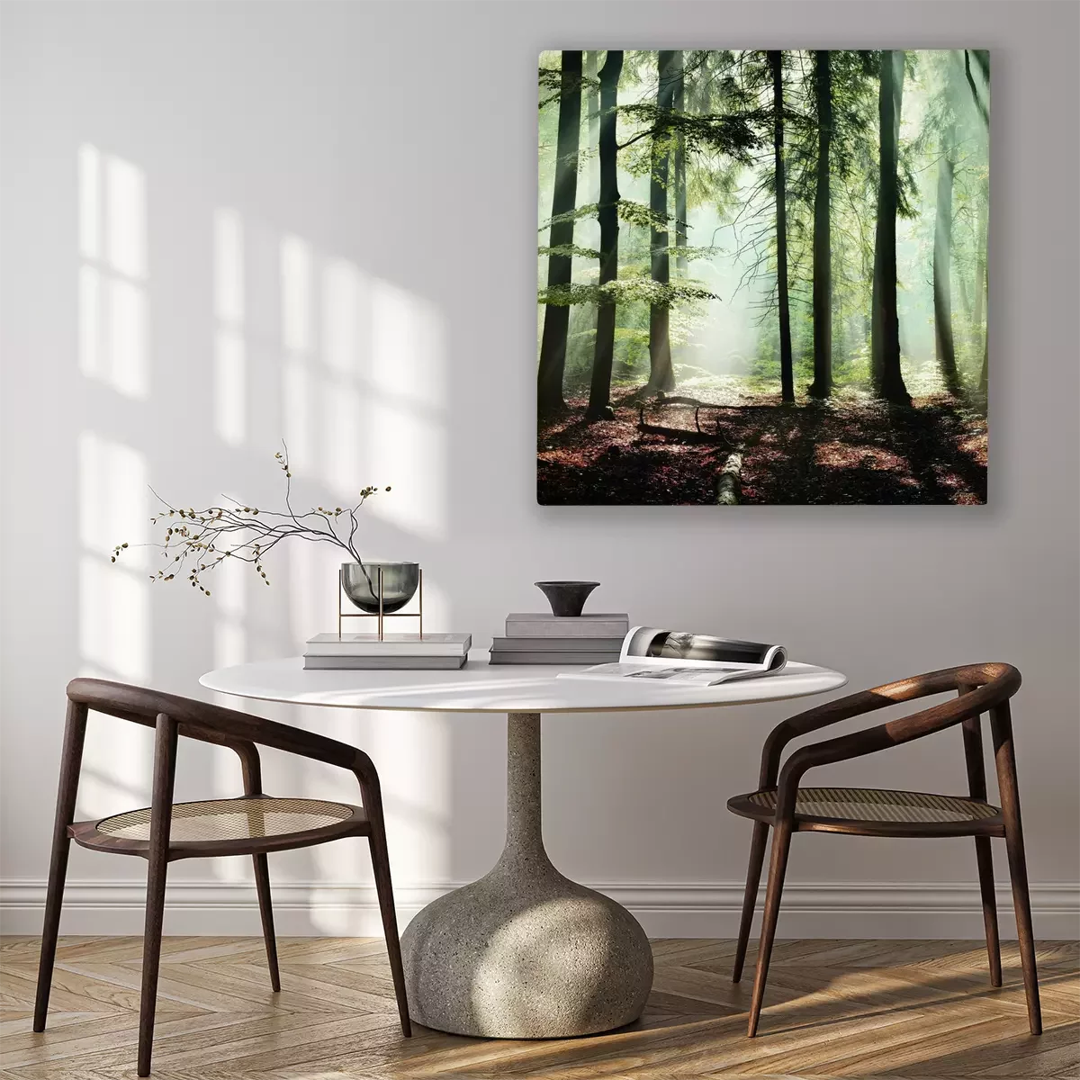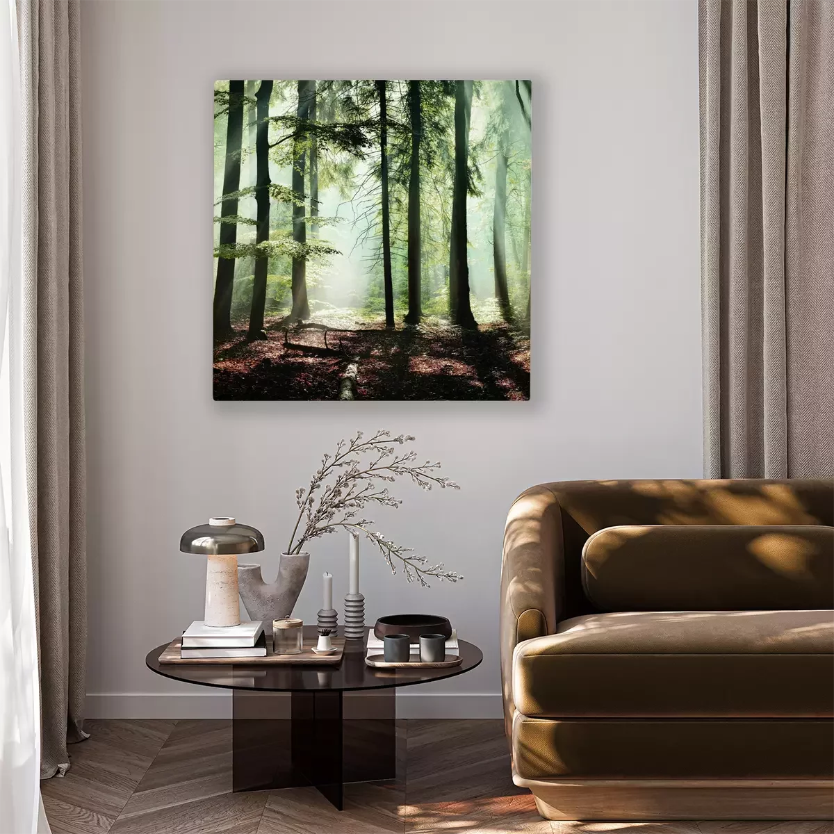 Ein nadelwald, erleuchtet vom sanften morgenlicht