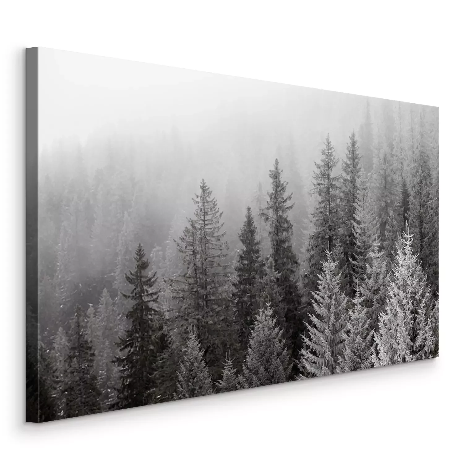 Bild: Ein nebliger Winterwald mit schneebedeckten Fichten