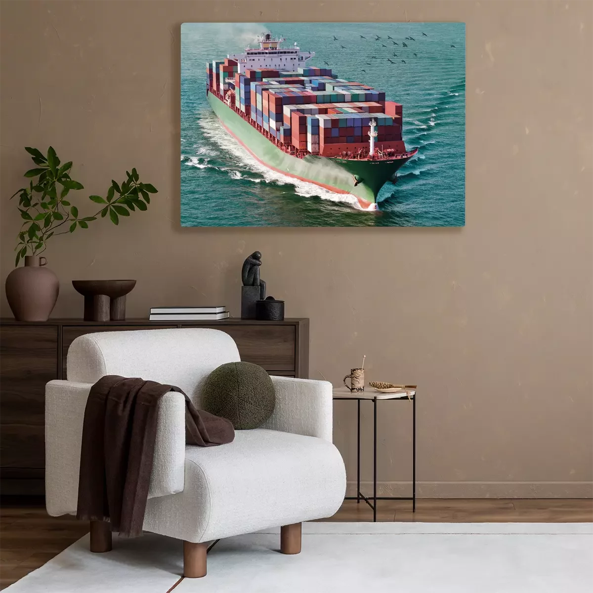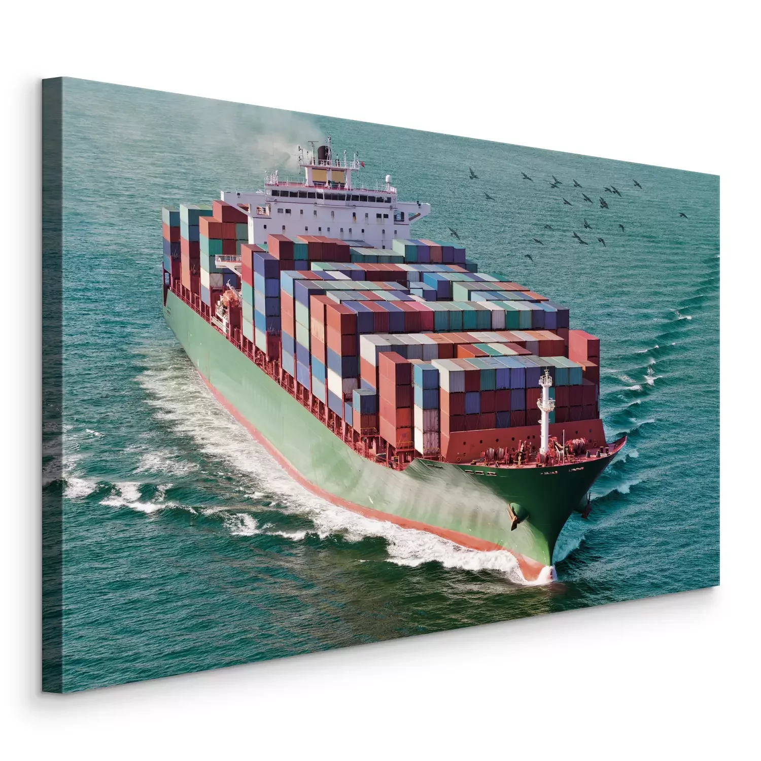 Ein riesiges frachtschiff durchquert den weiten ozean