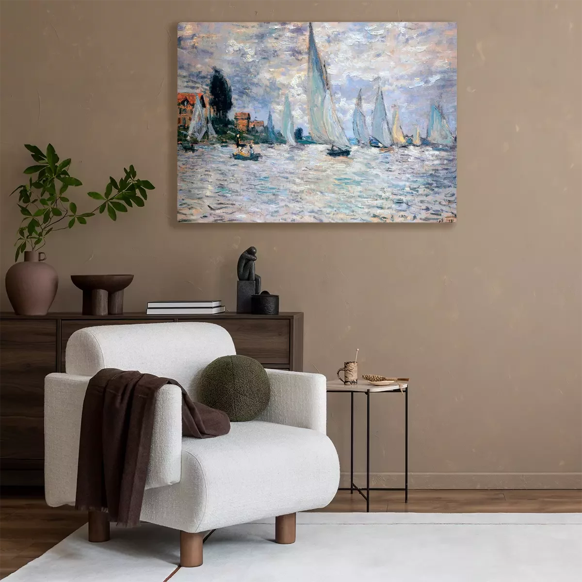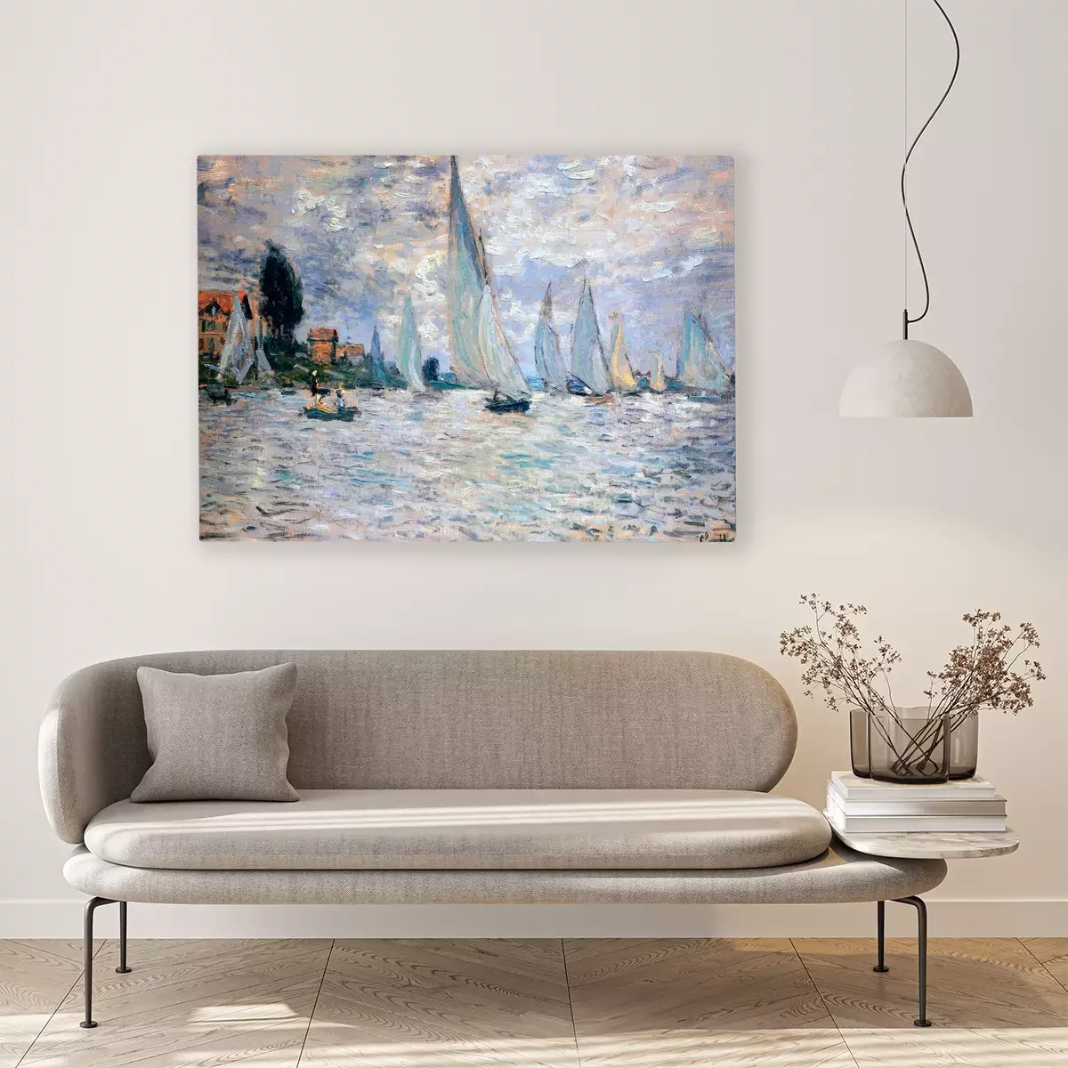 Ein ruhiger see mit segelbooten und blick auf die stadt