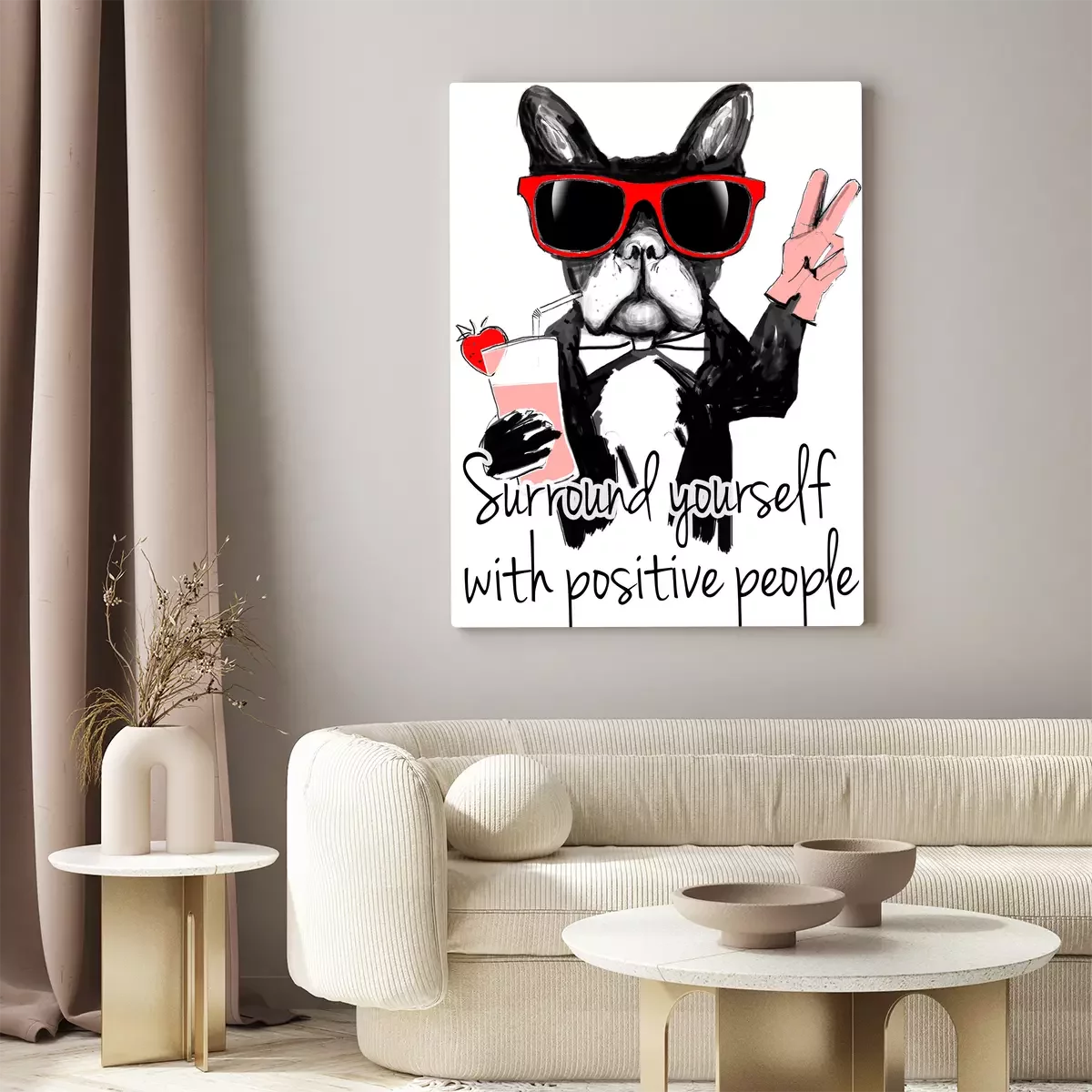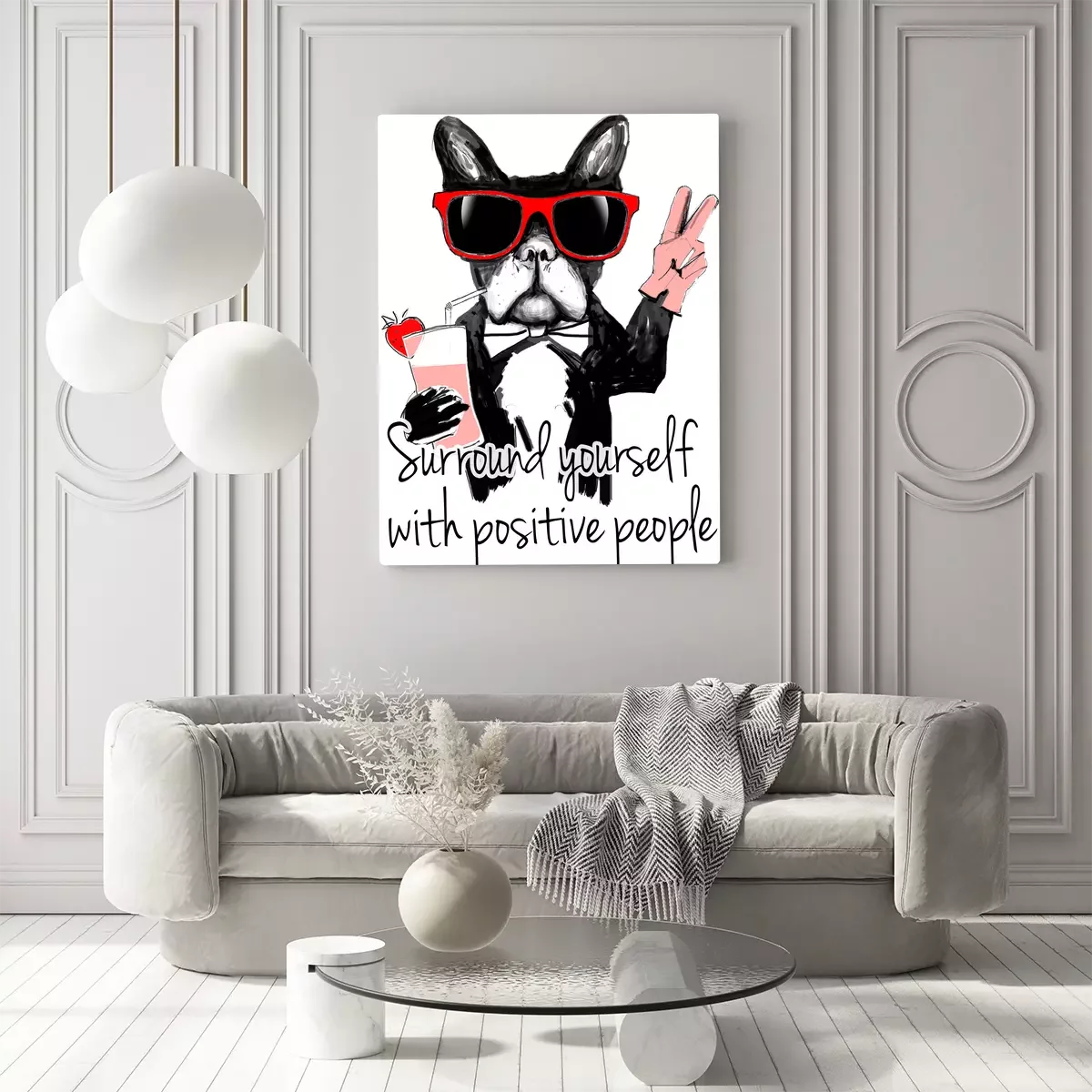 Ein schild mit einer bulldogge mit brille