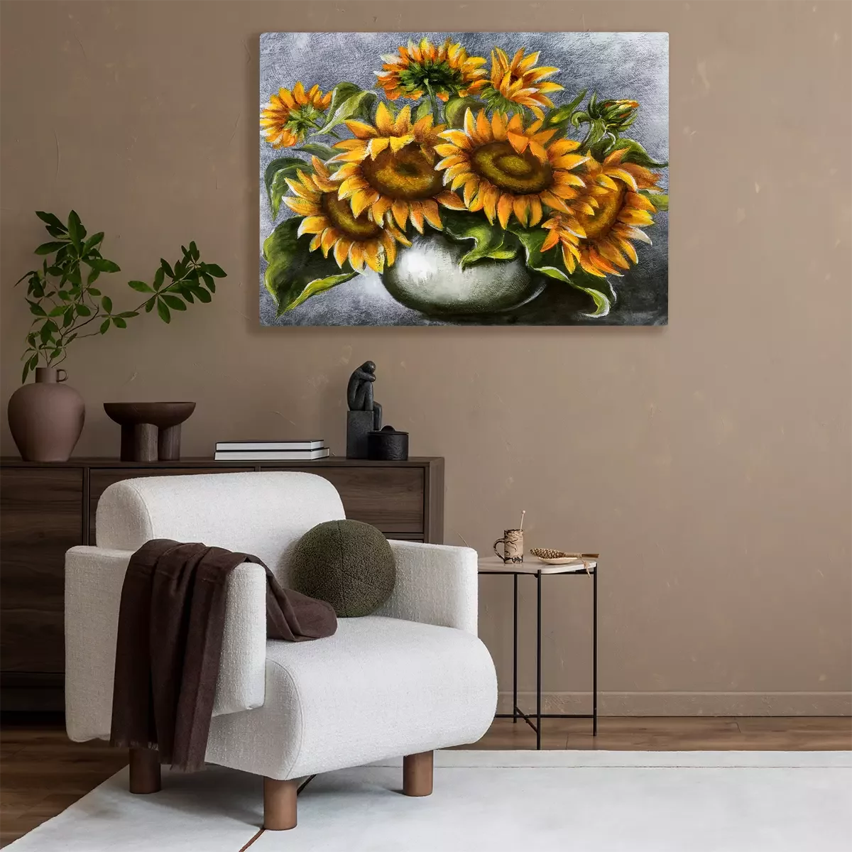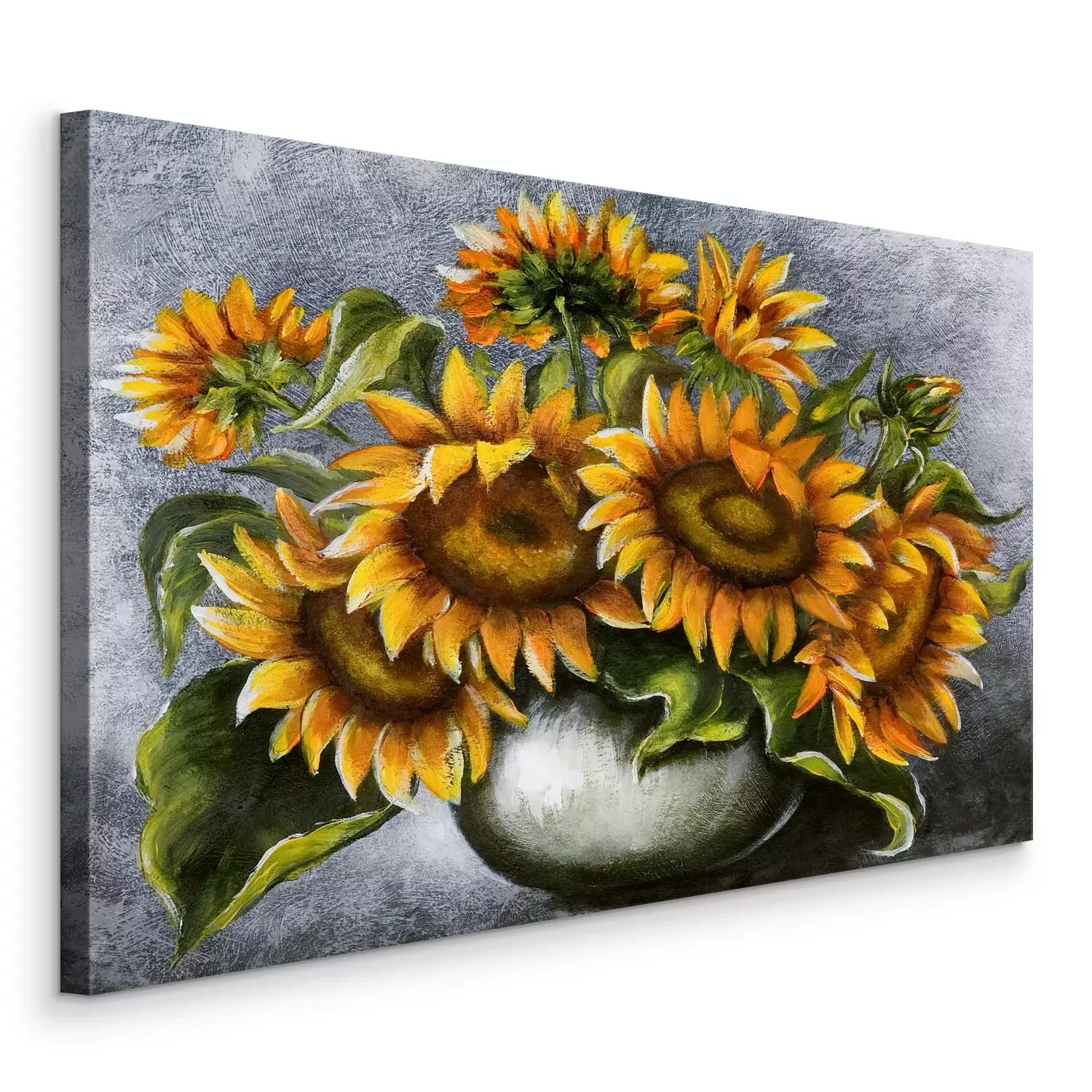 Ein strauß sonnenblumen in einer vase vor grauem hintergrund