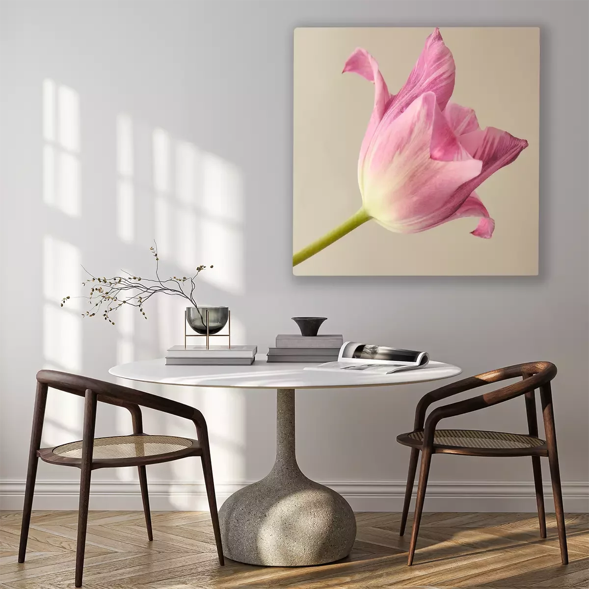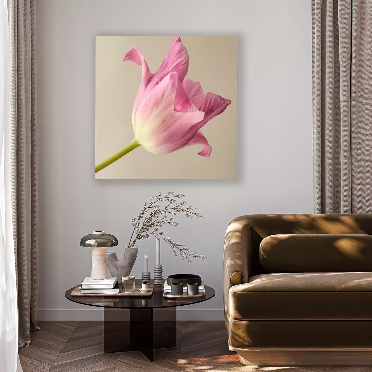 Eine aufnahme einer einzelnen tulpe mit zarten rosa blütenblättern
