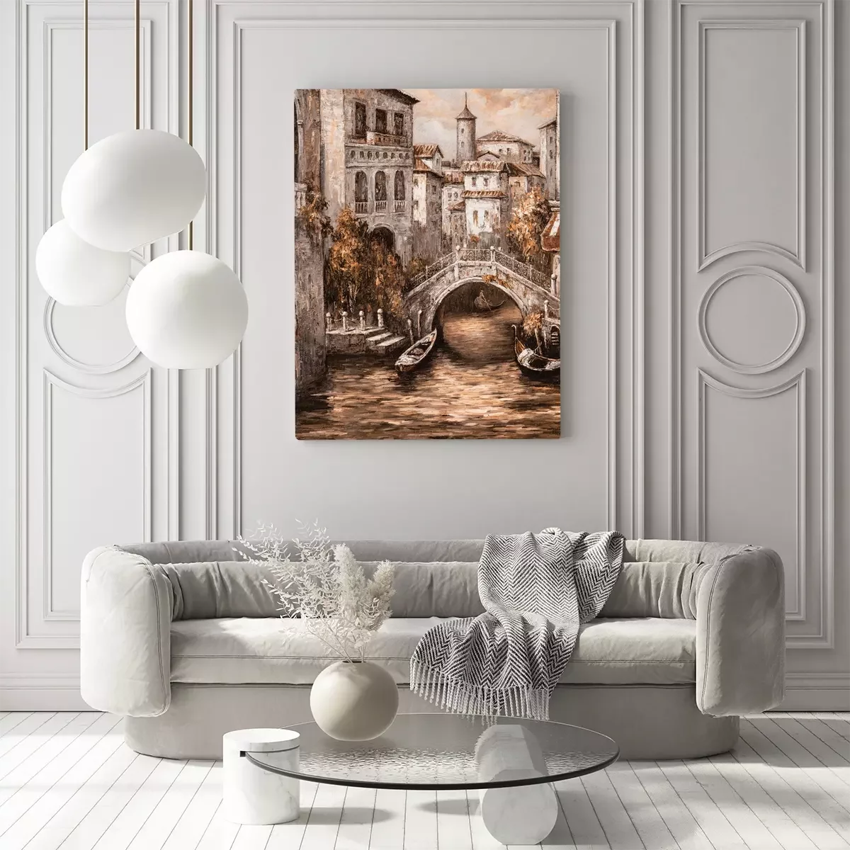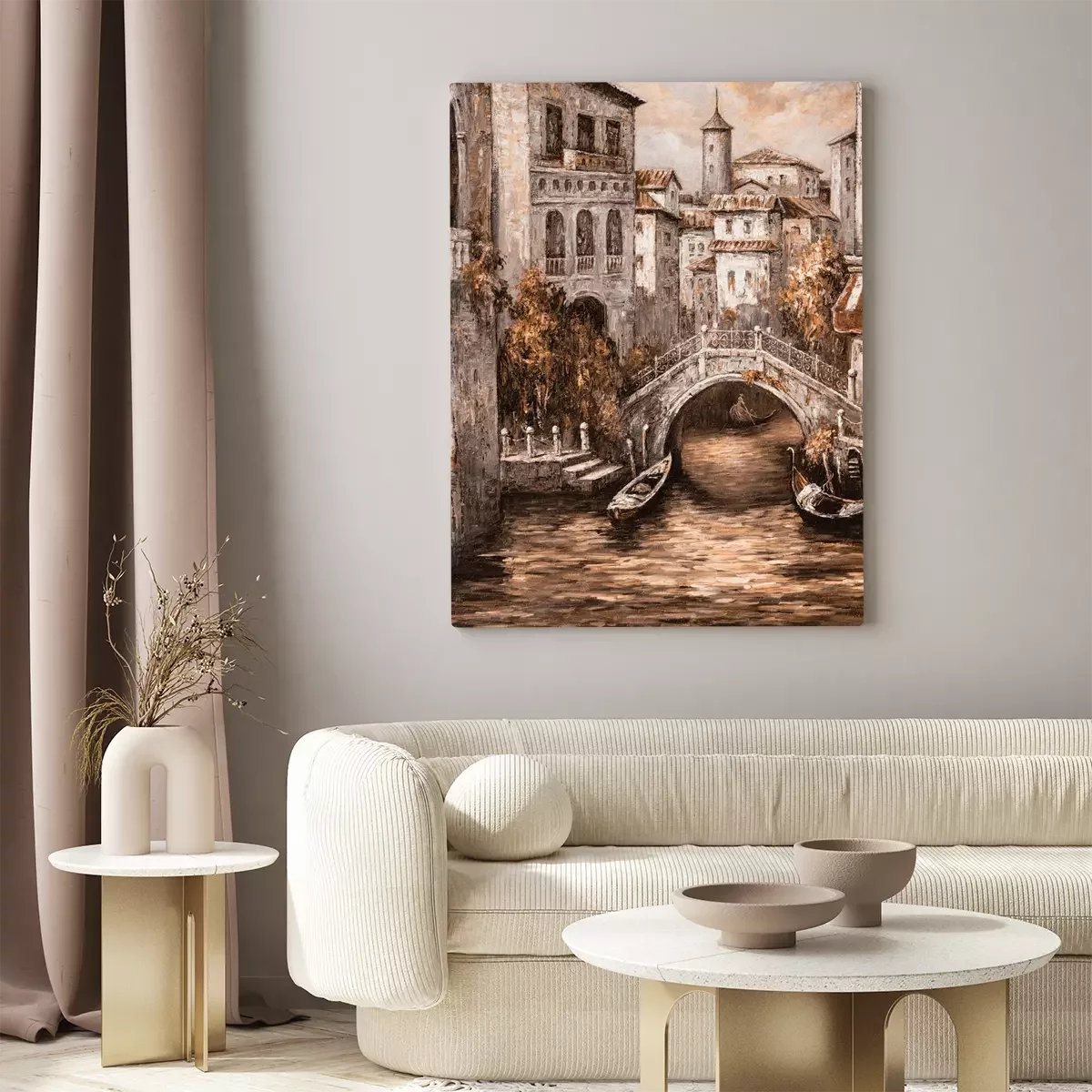 Eine bezaubernde italienische stadt am wasser mit gondeln.