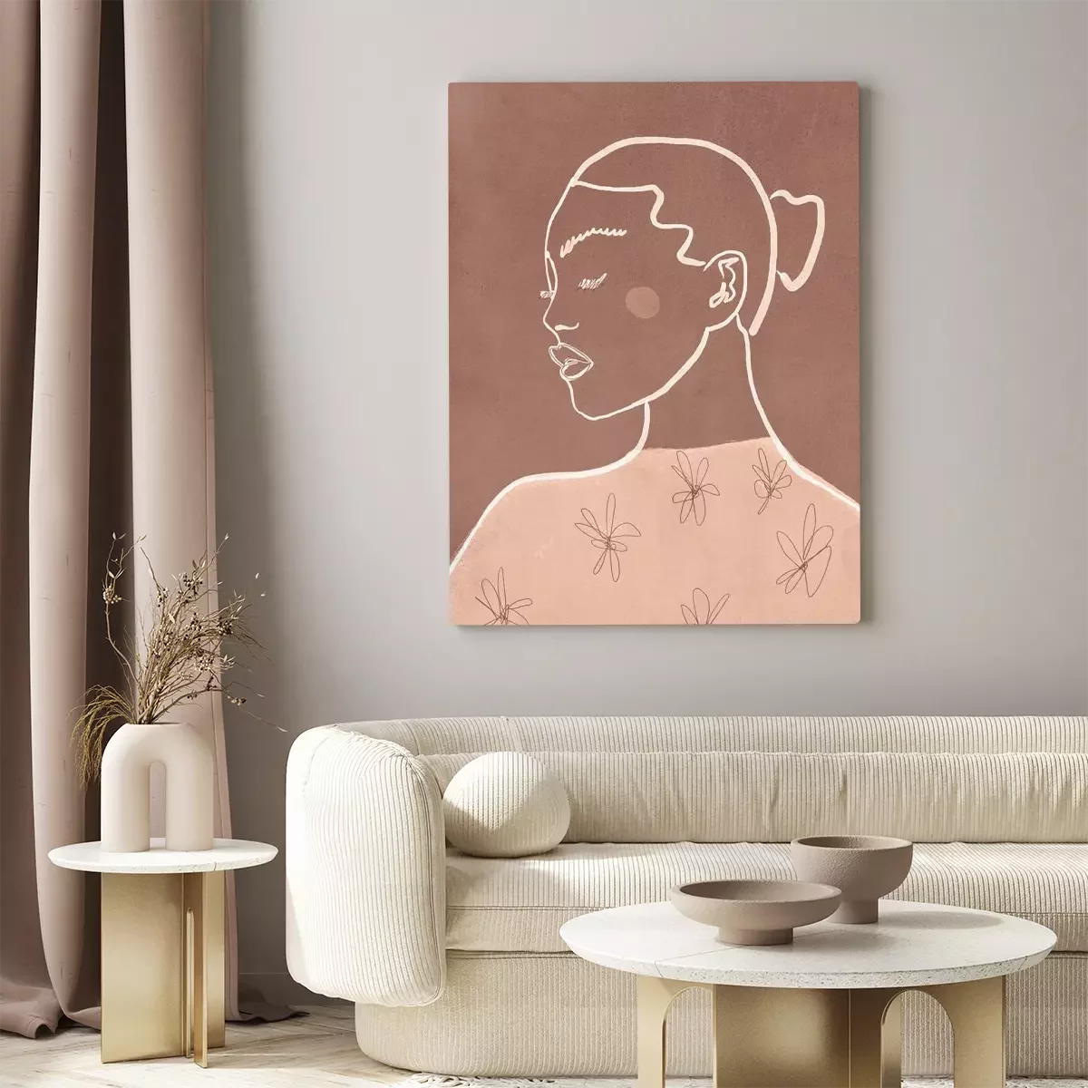 Eine dezente skizze einer frau mit einem blumenmotiv