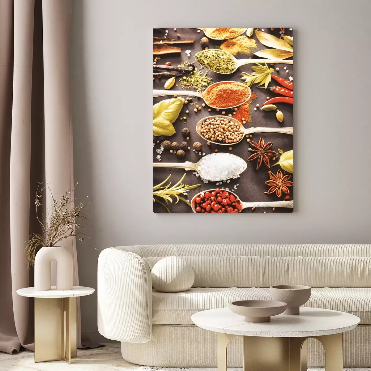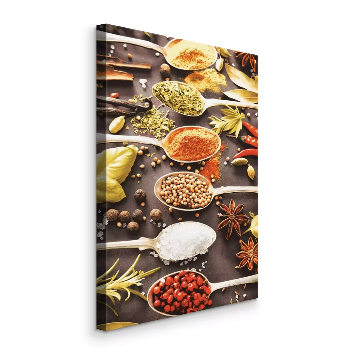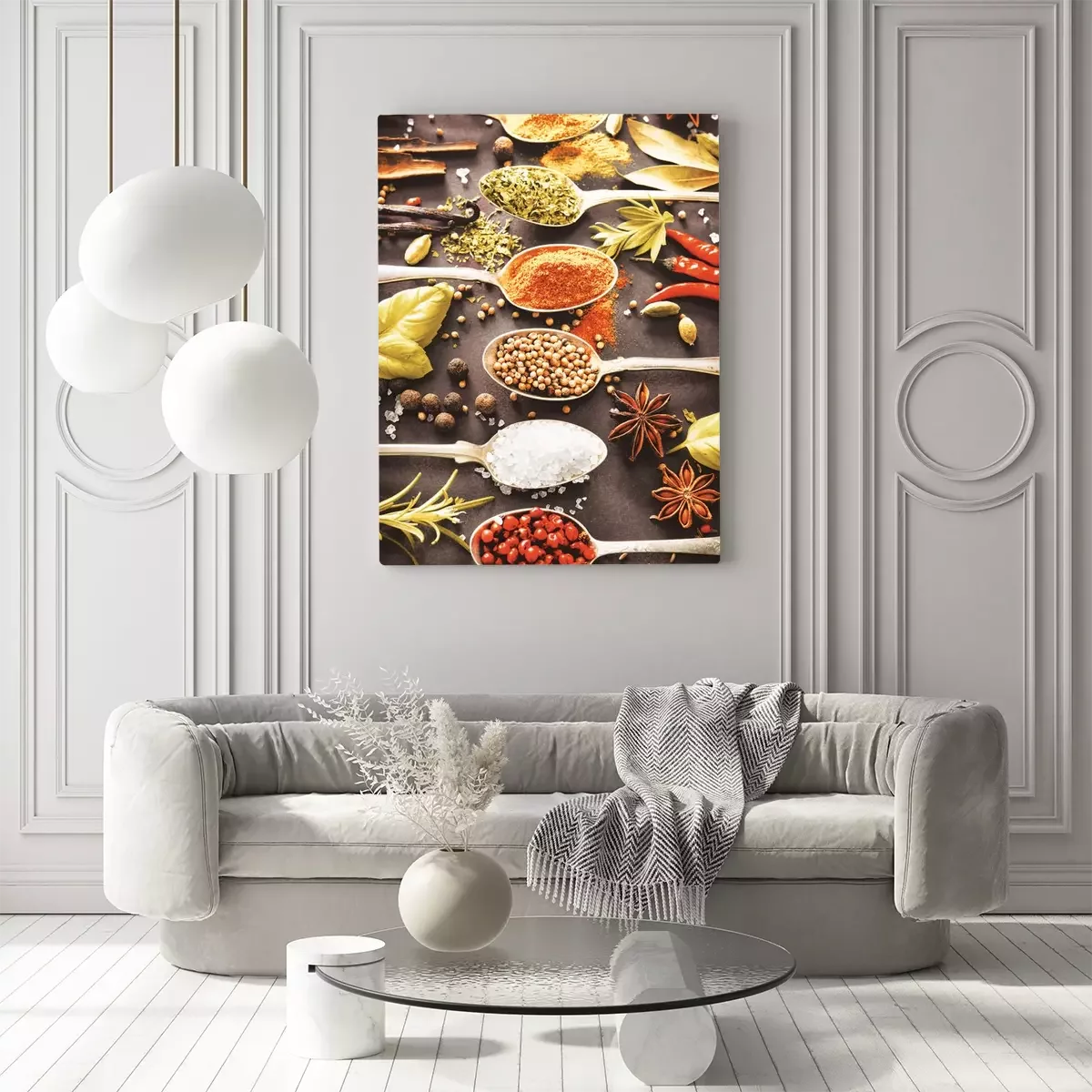 Eine farbenfrohe komposition aus gewürzen auf löffeln