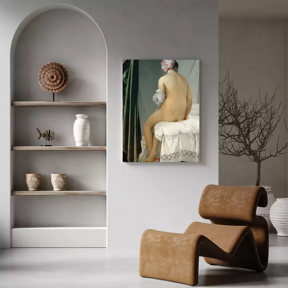 Eine frau, die morgens am vorhang in gedanken versunken ist.