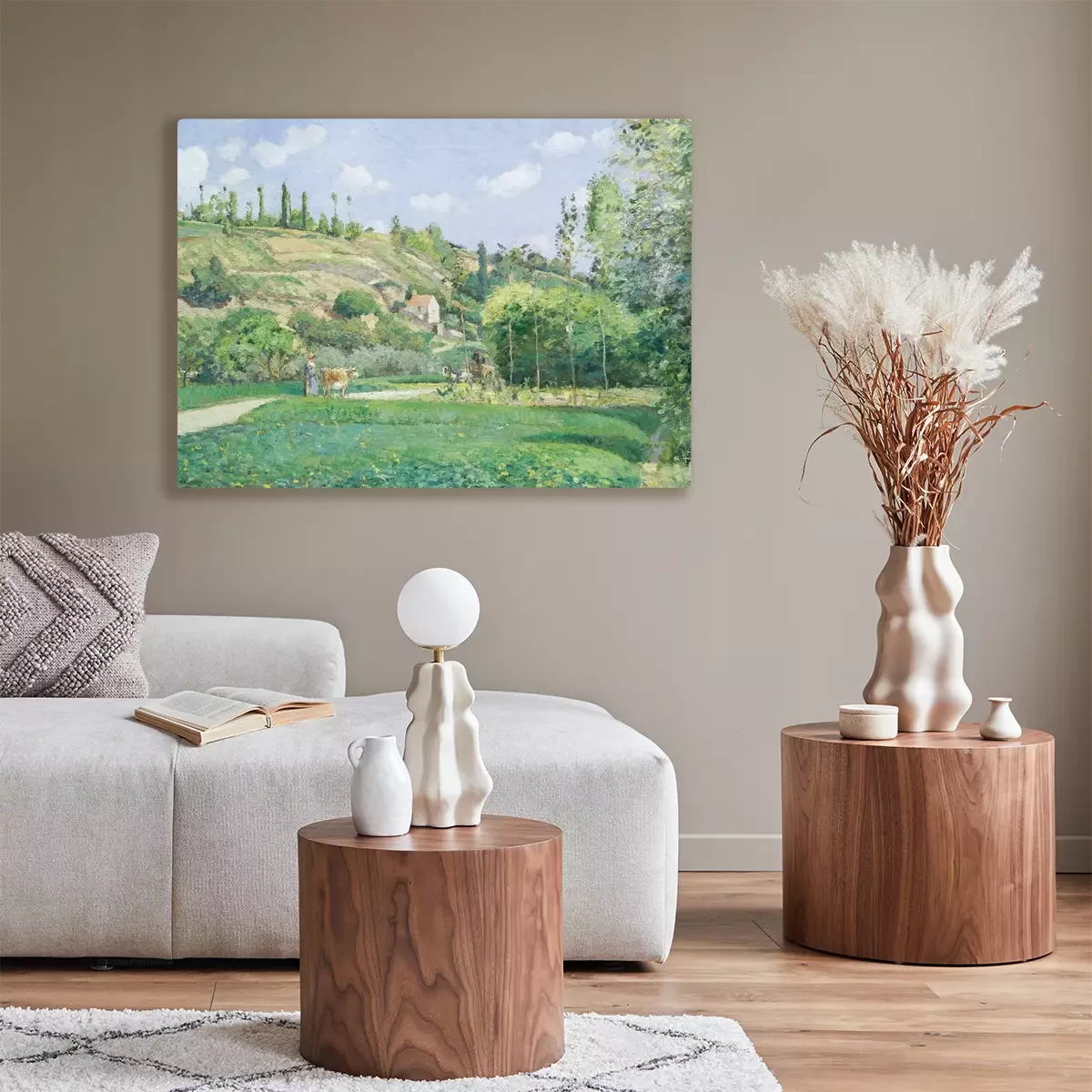 Eine friedliche ländliche landschaft mit einer grasenden kuh