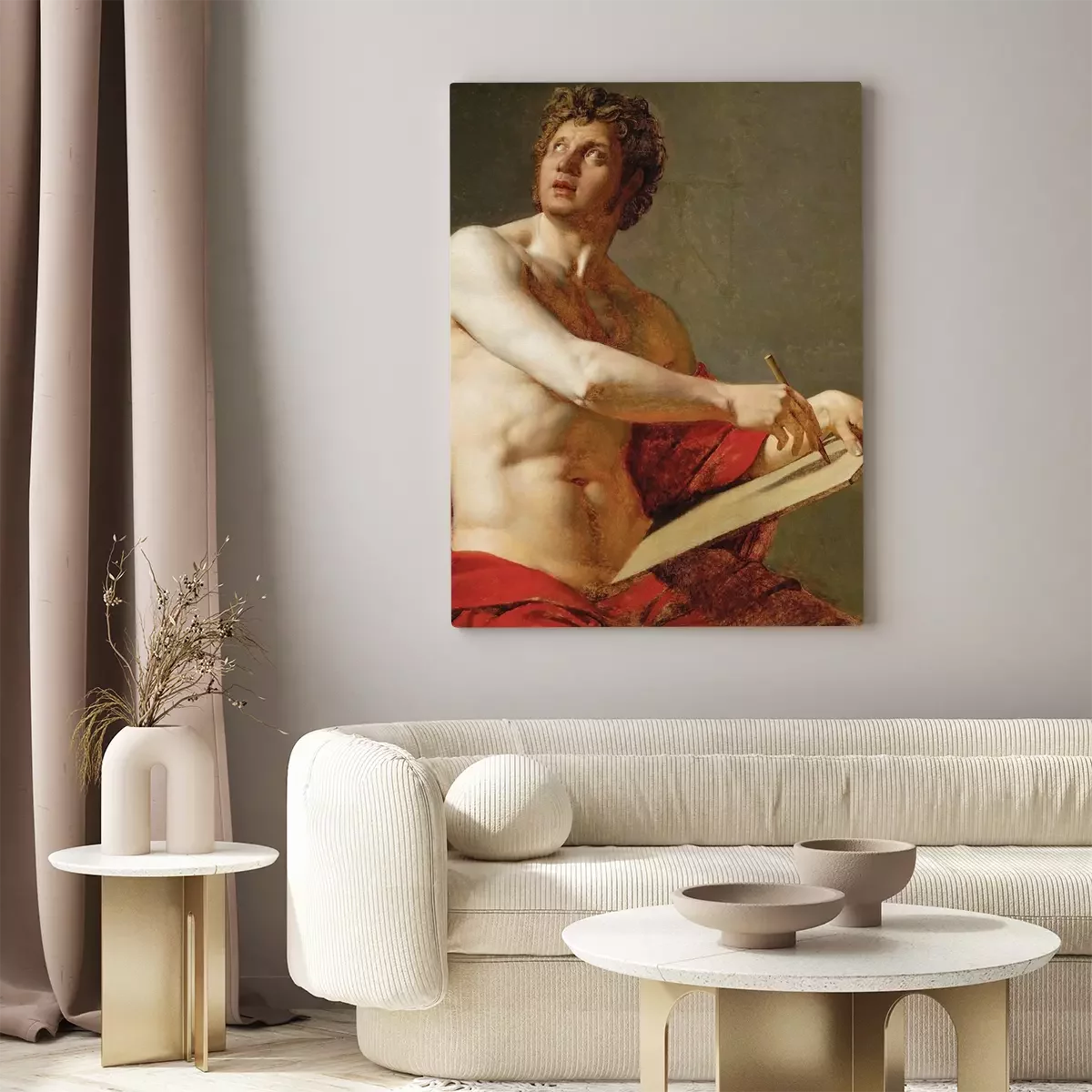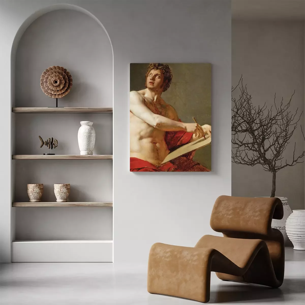 Eine künstlerin, die mit rotem stoff arbeitet