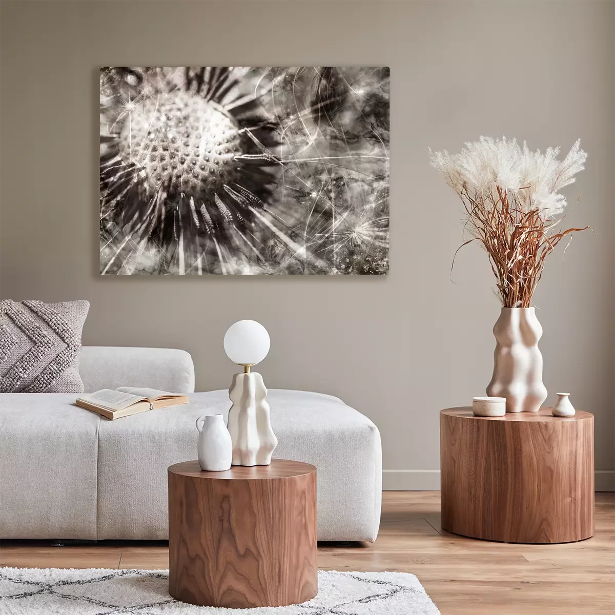 Eine nahaufnahme eines löwenzahns in monochromen tönen