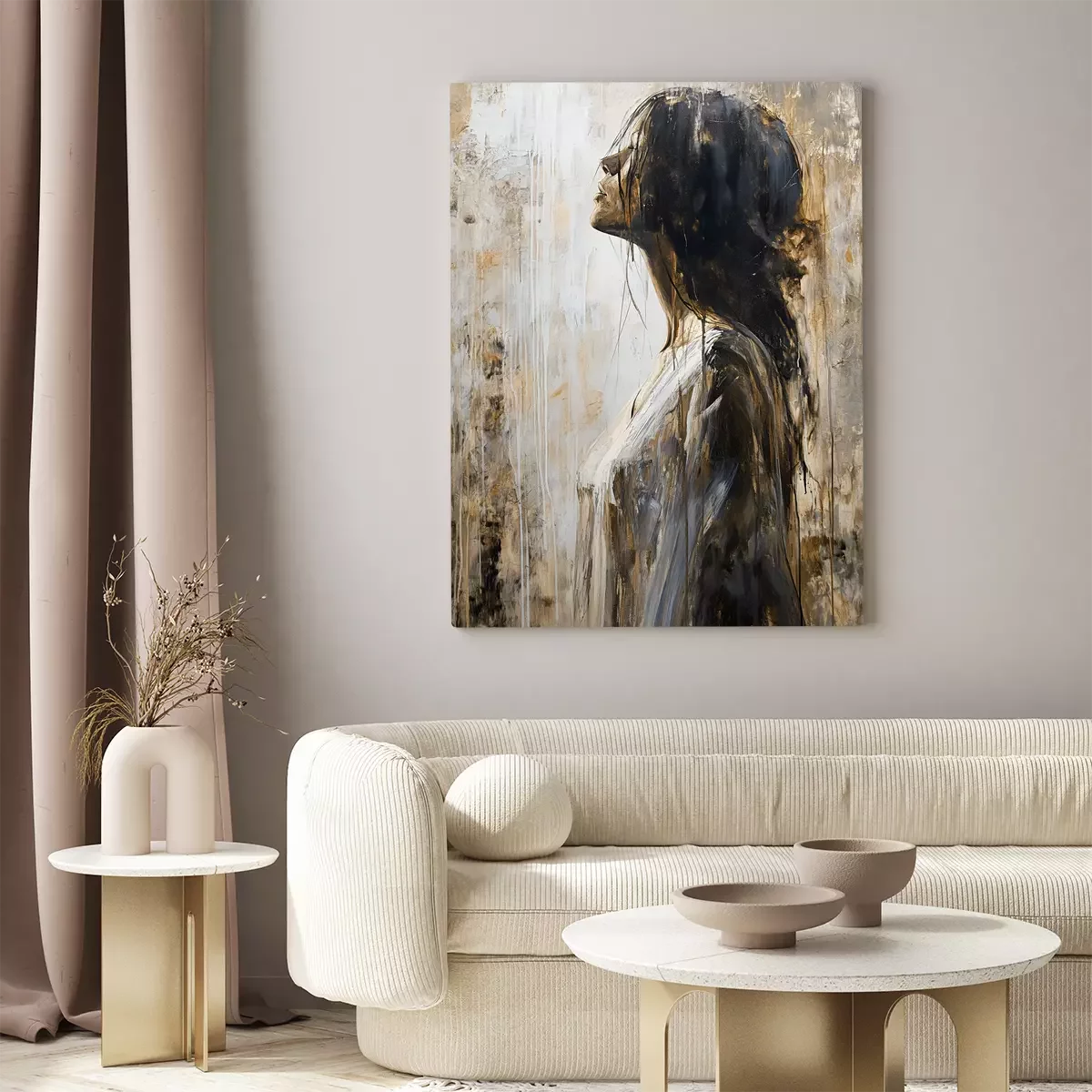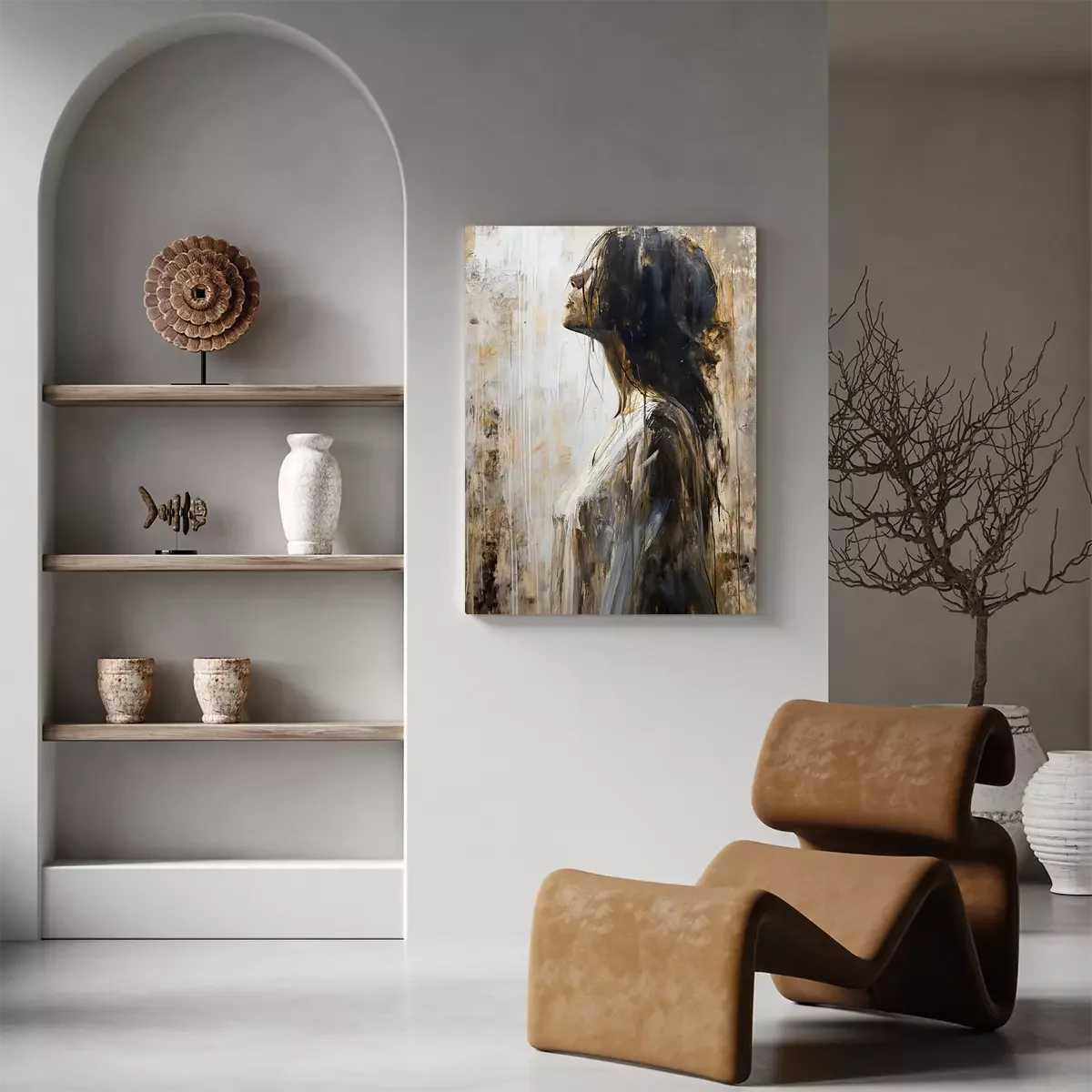 Eine nostalgische frau in einem künstlerischen ansatz
