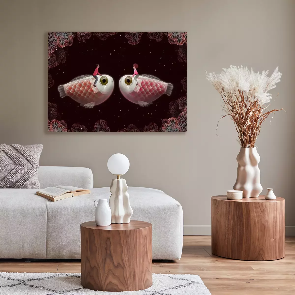 Das Motiv wird auf eine qualitativ hochwertige Leinwand gedruckt, die auf einen Blendrahmen gezogen wird. Da der Aufdruck die Seitenkanten bedeckt, muss das Bild nicht zusätzlich eingerahmt werden. Wir empfehlen außerdem Kompositionen aus mehreren Bildern, die ein harmonisches Ganzes bilden.
