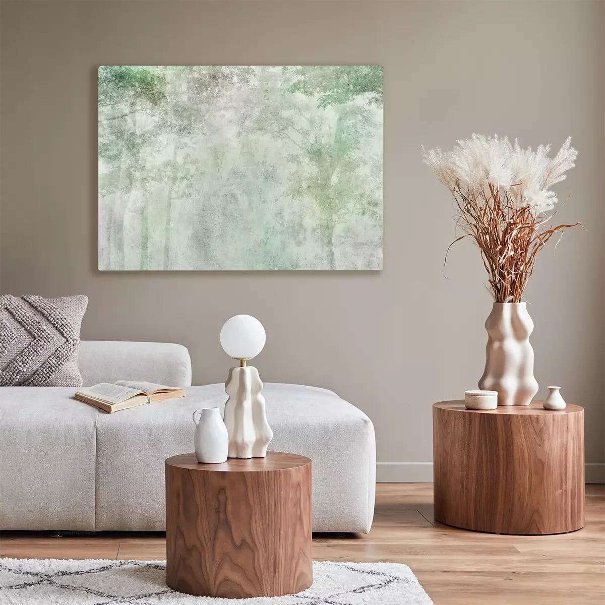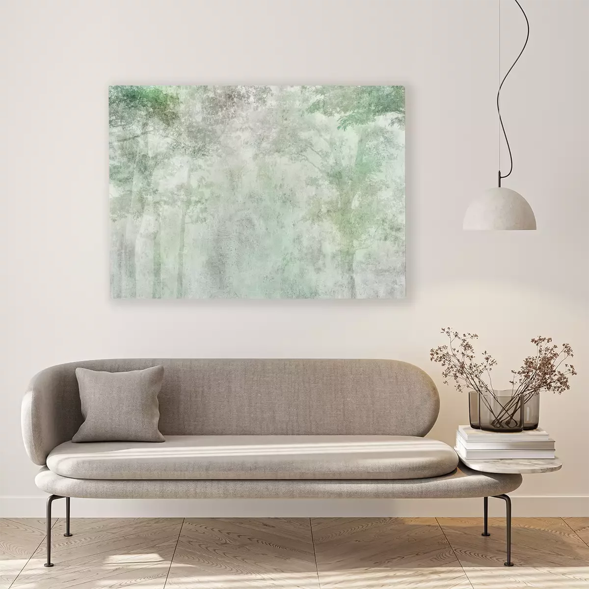Eine waldlandschaft in grüntönen mit betonstruktur