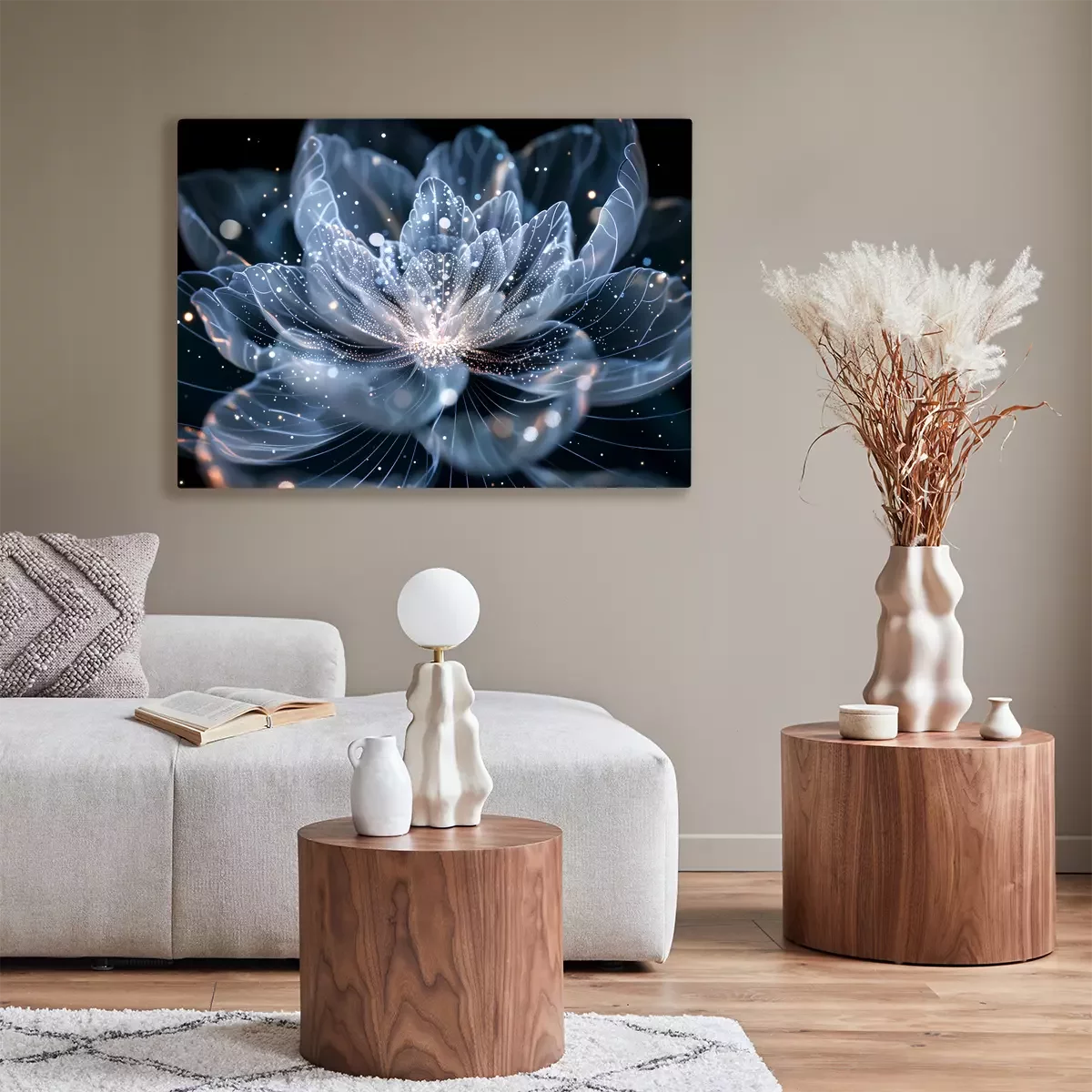 Eine zarte, leuchtende blume in kühlen farbtönen