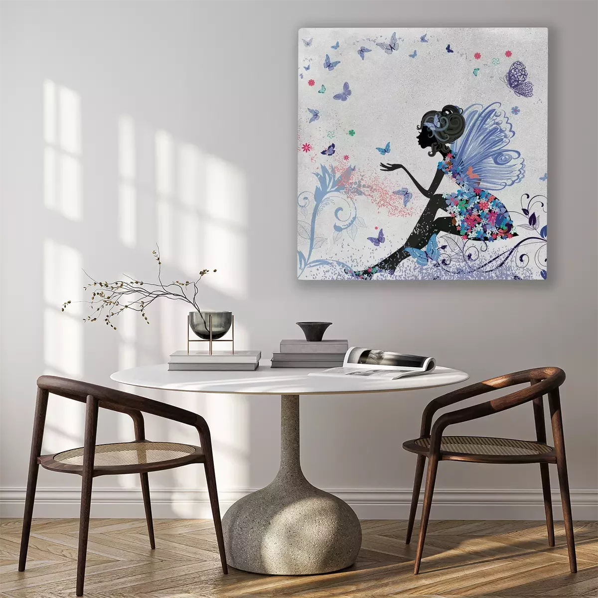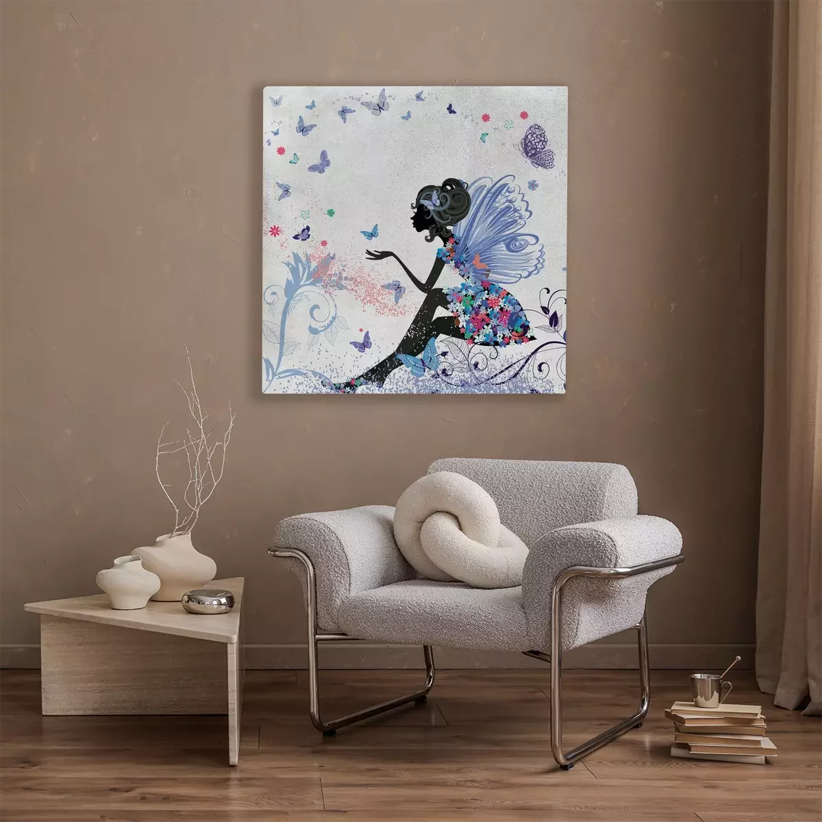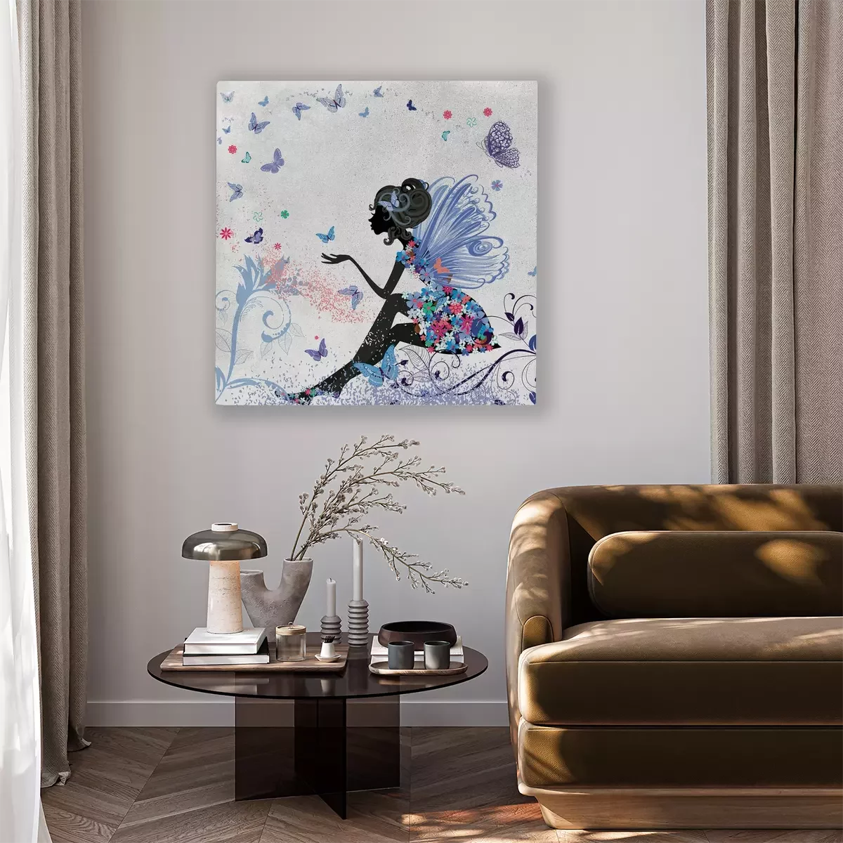 Eine zauberhafte fee, umgeben von schmetterlingen und üppiger vegetation