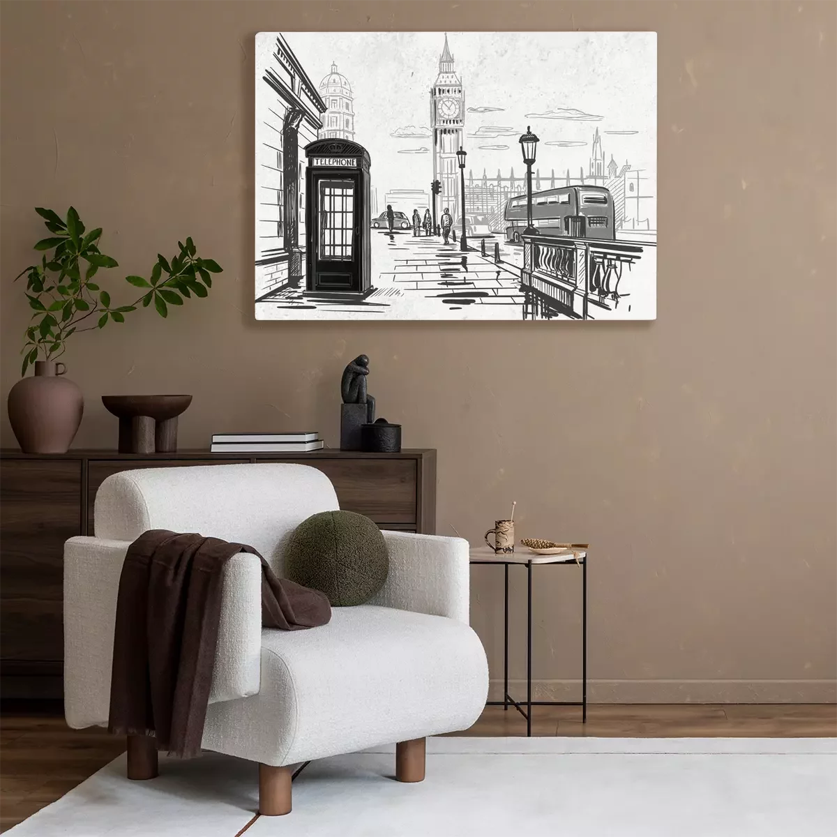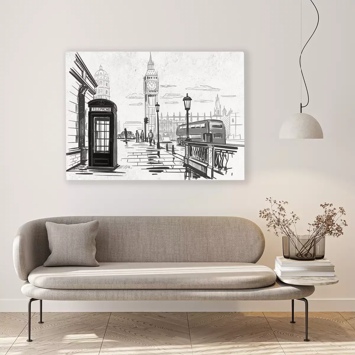 Eine zeichnung der stadt london mit einem telefonzellensymbol