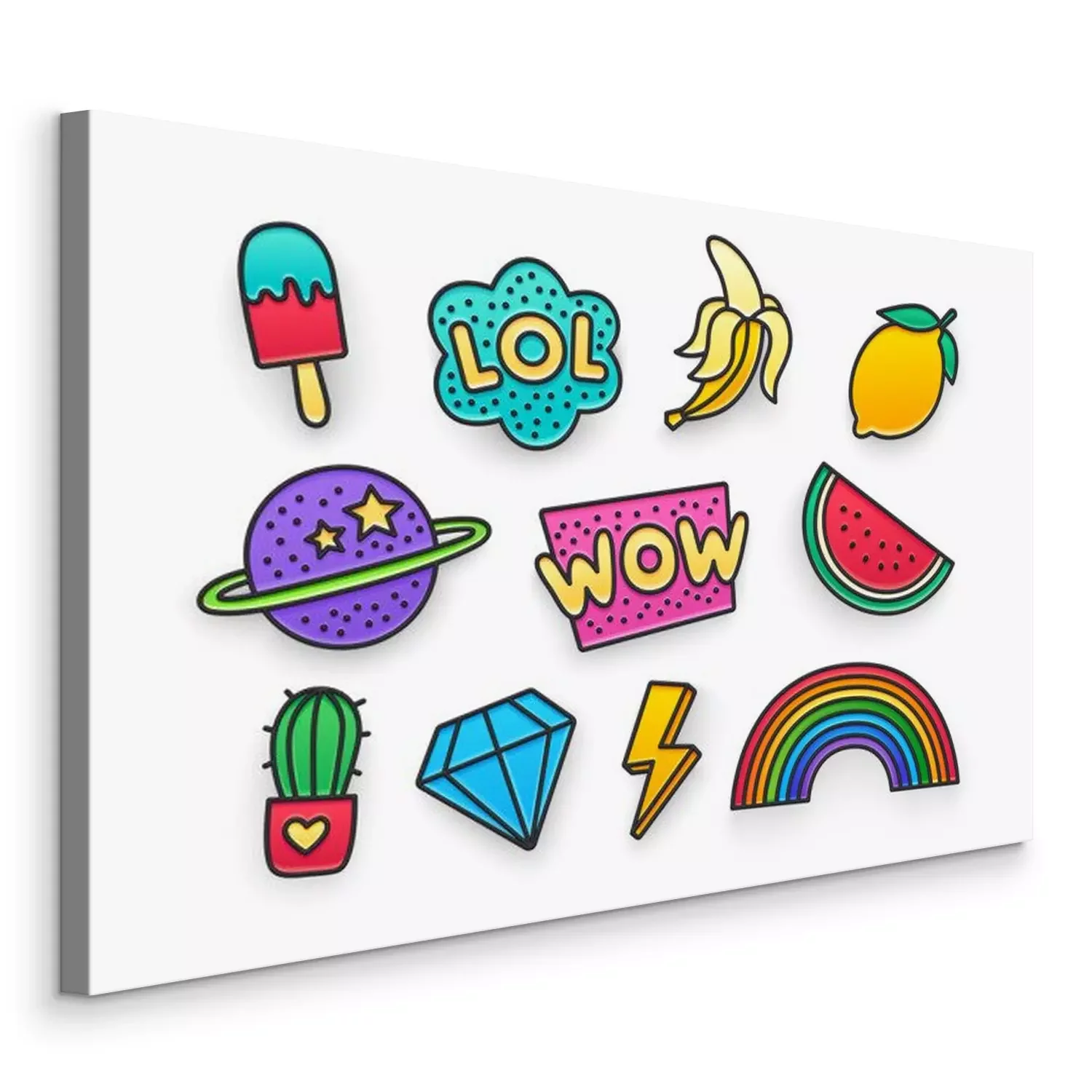 Bild: Einfache bunte Symbole mit fröhlichem Charakter