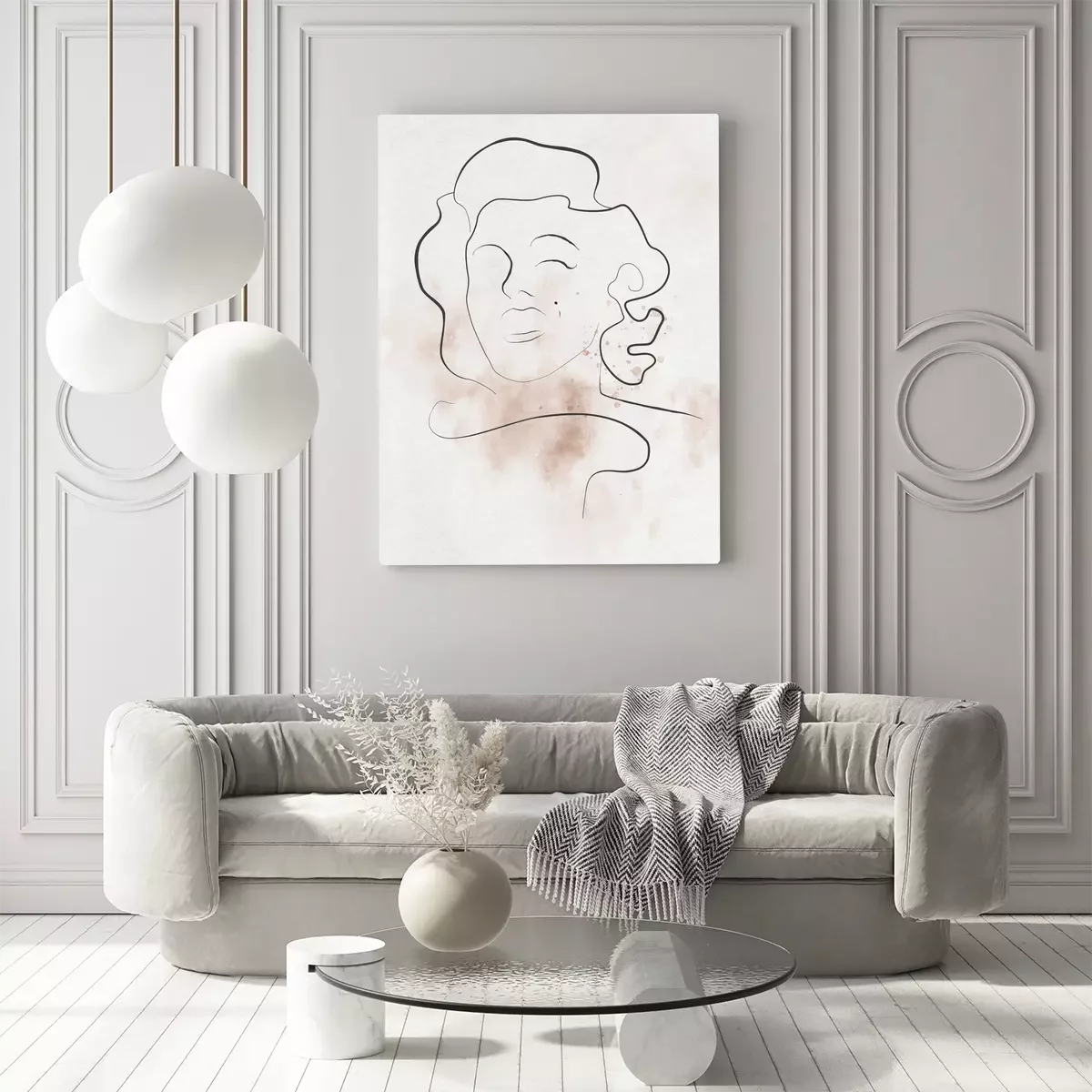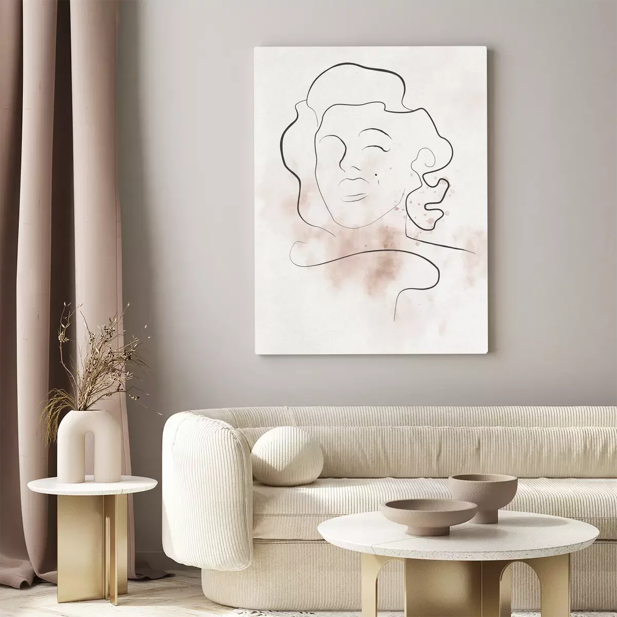 Einzeiliges porträt von marilyn monroe mit beigen farbtupfern