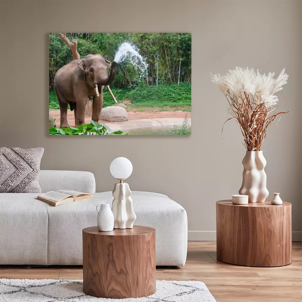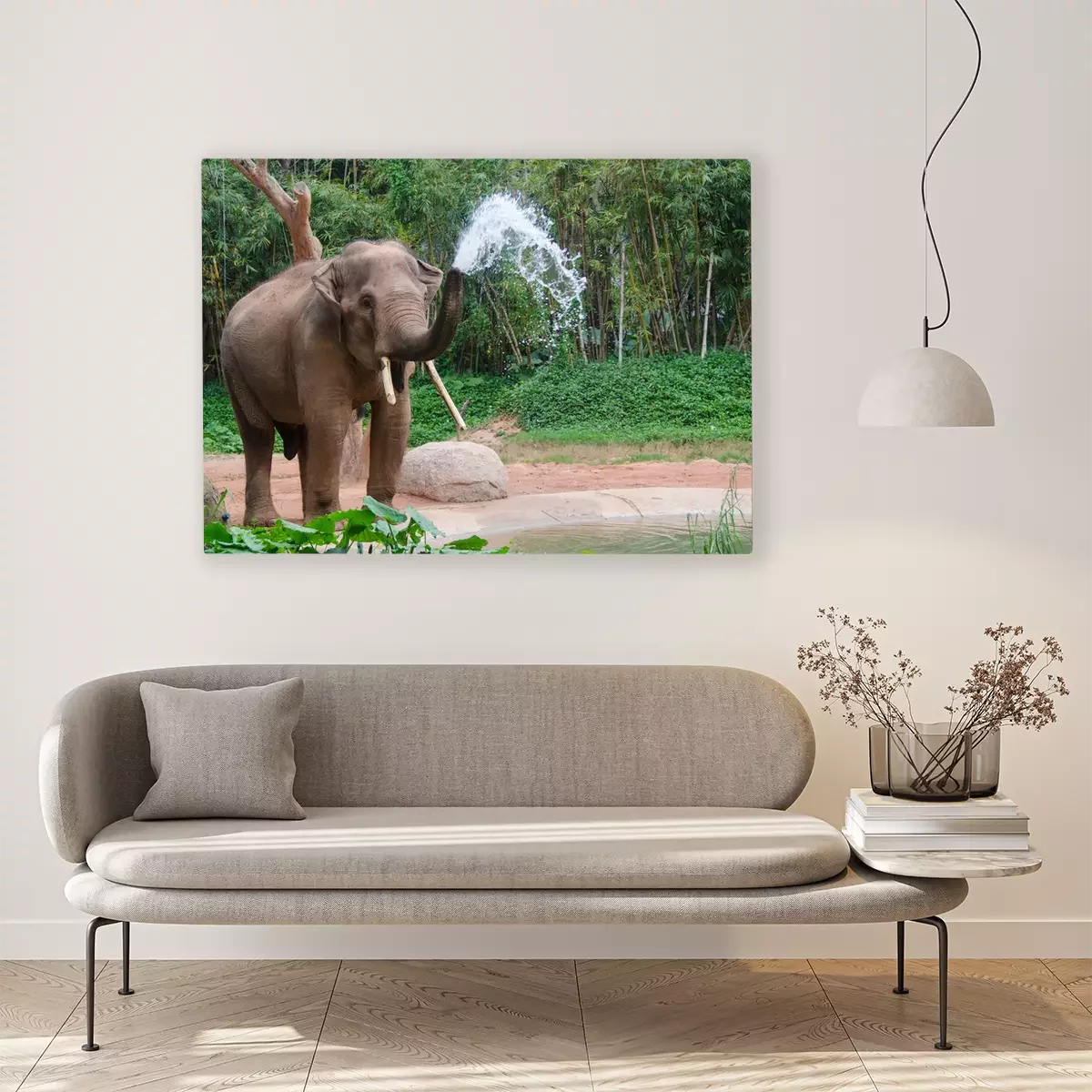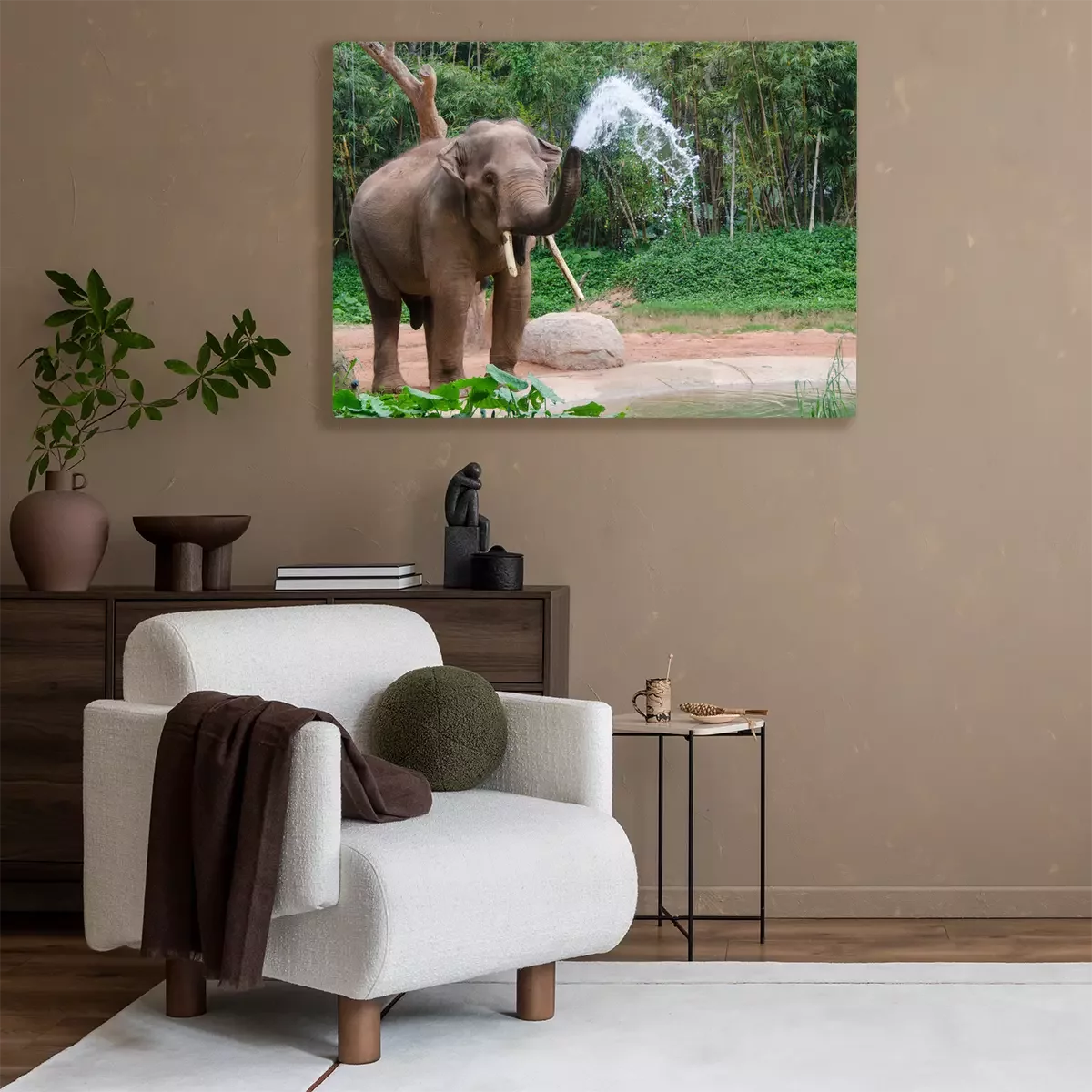 Bild Elefant, der Wasser aus dem Rüssel herauslässt