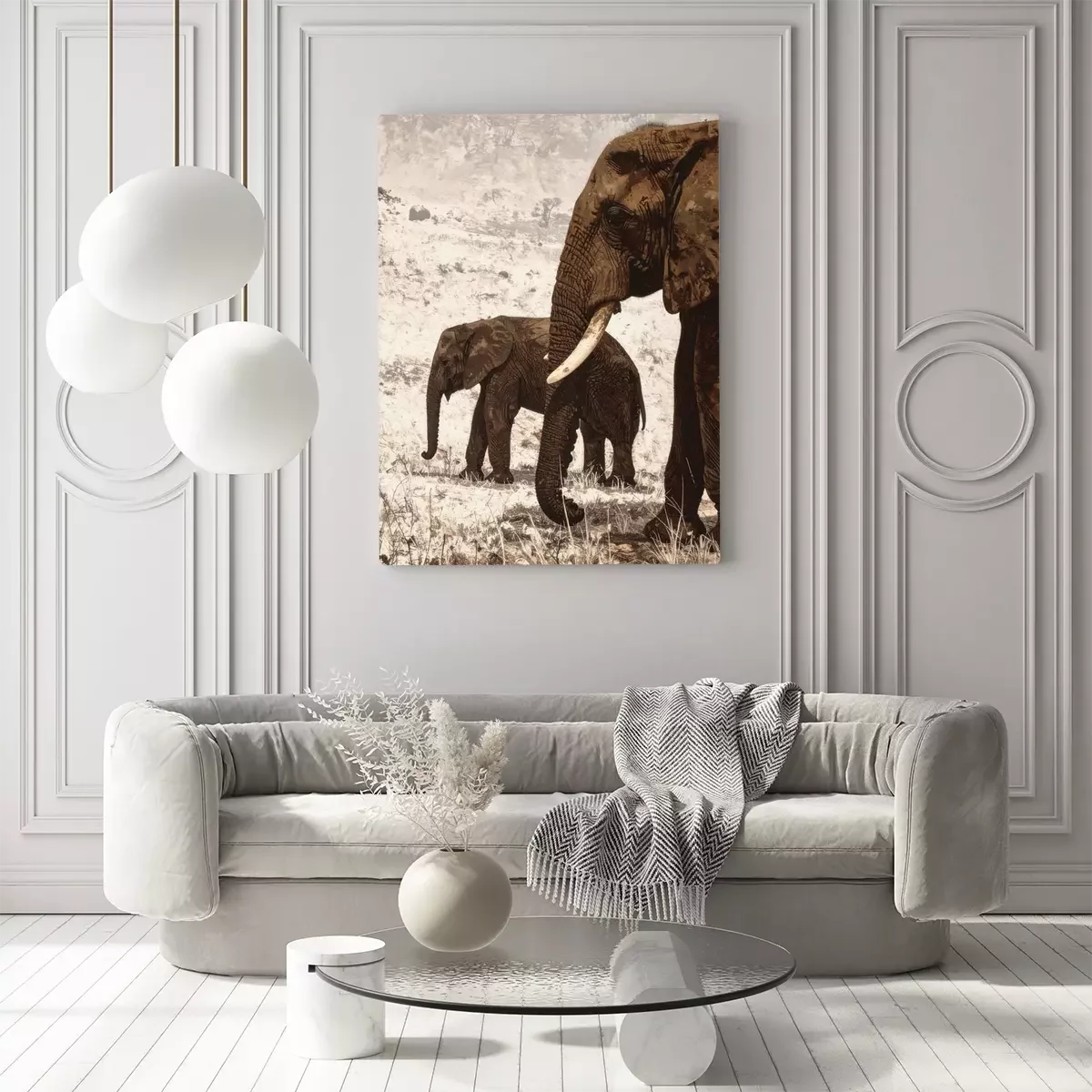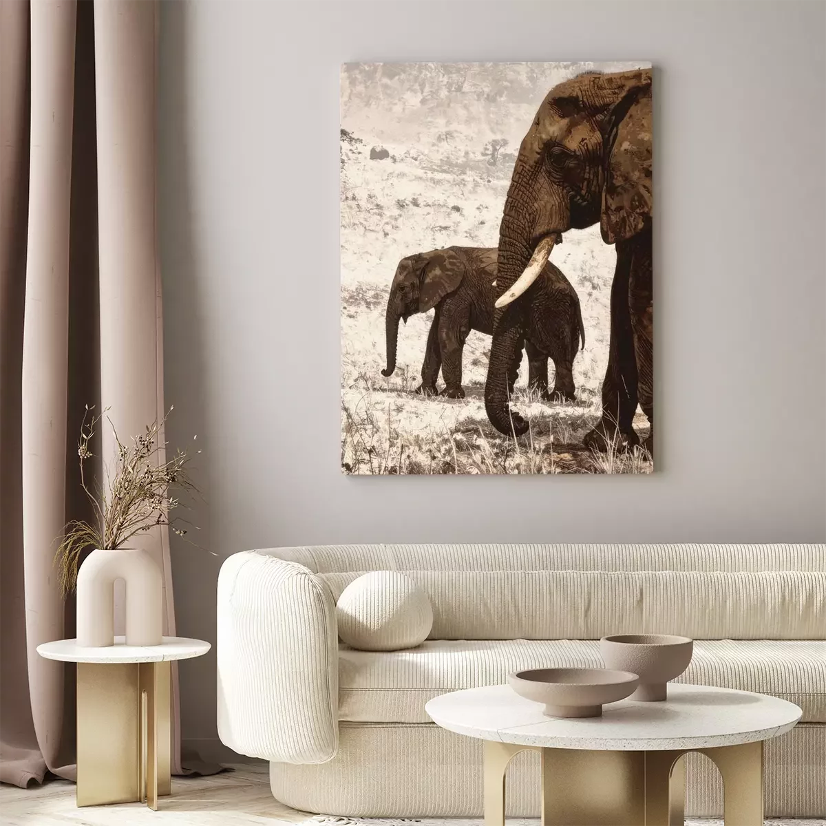 Elefanten durchstreifen die trockene savanne