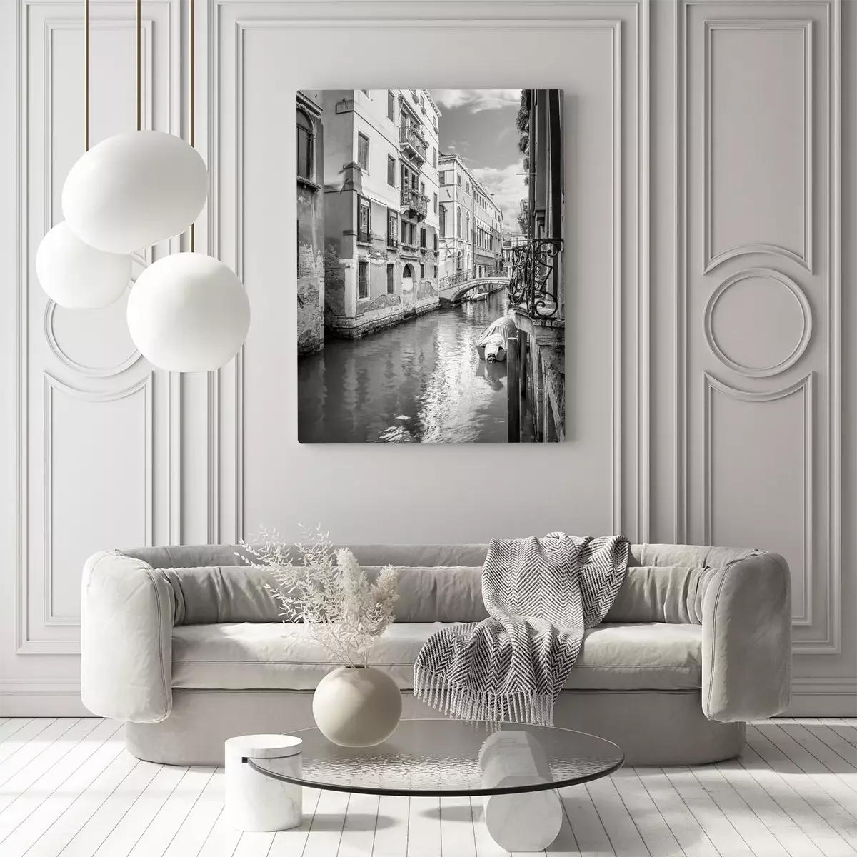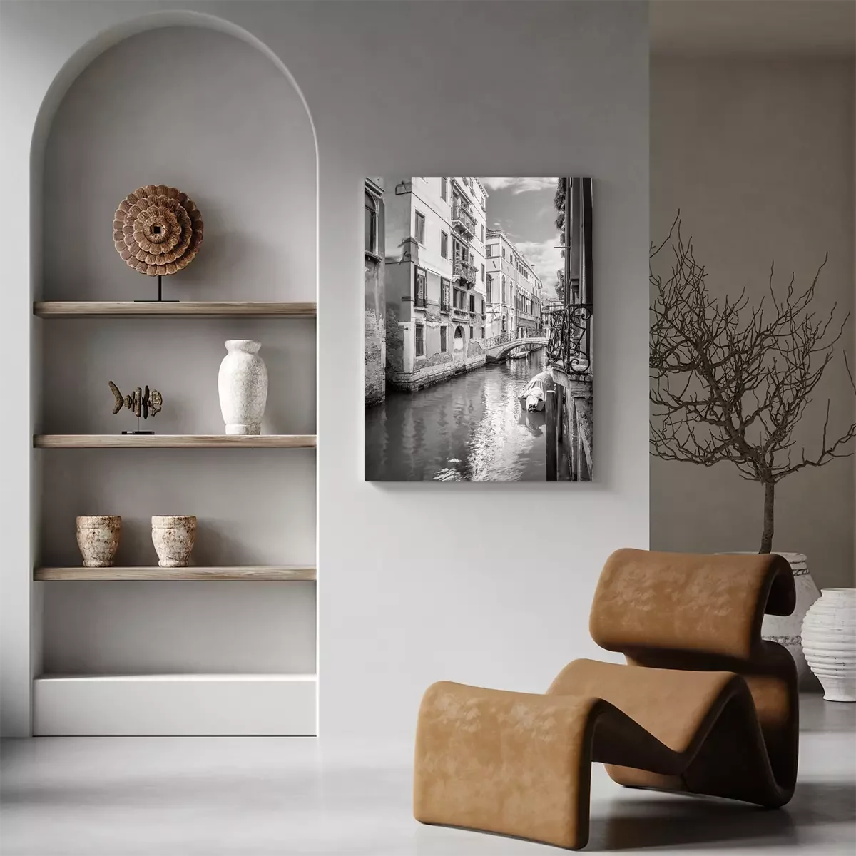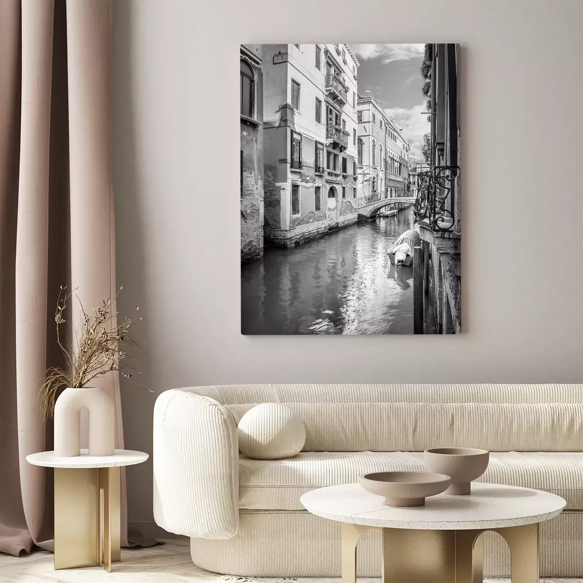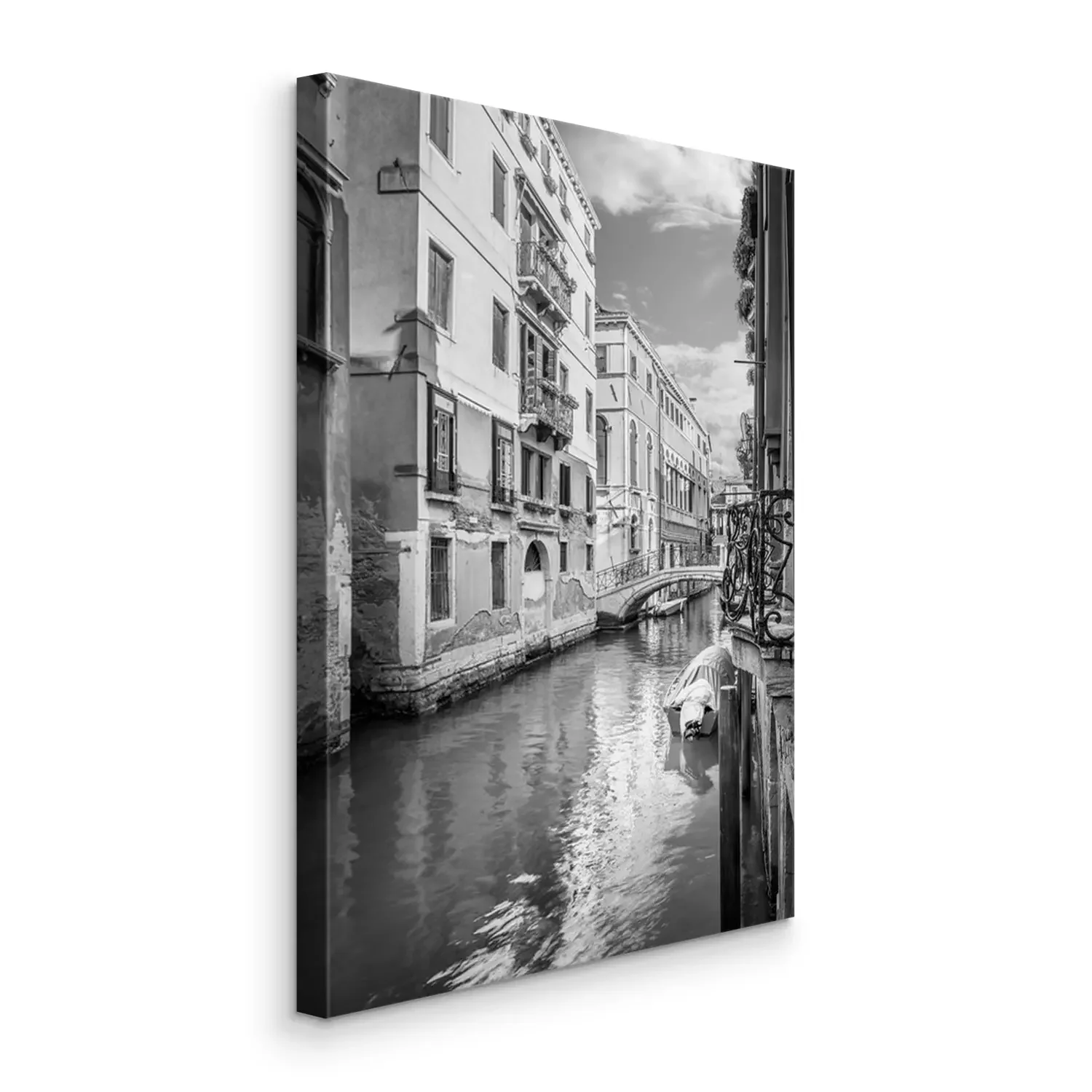 Bild: Enger schwarz-weißer venezianischer Kanal