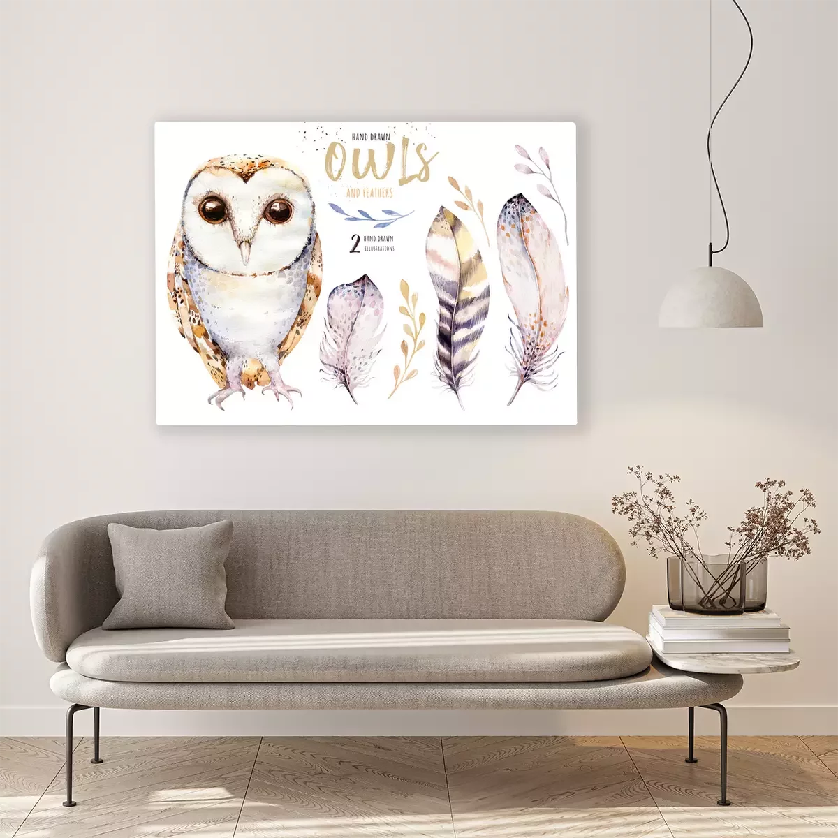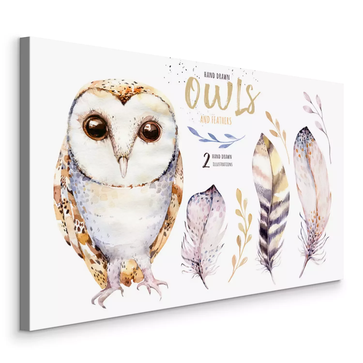 Niedliche Eule mit Aquarell-Blumen auf dem Kopf