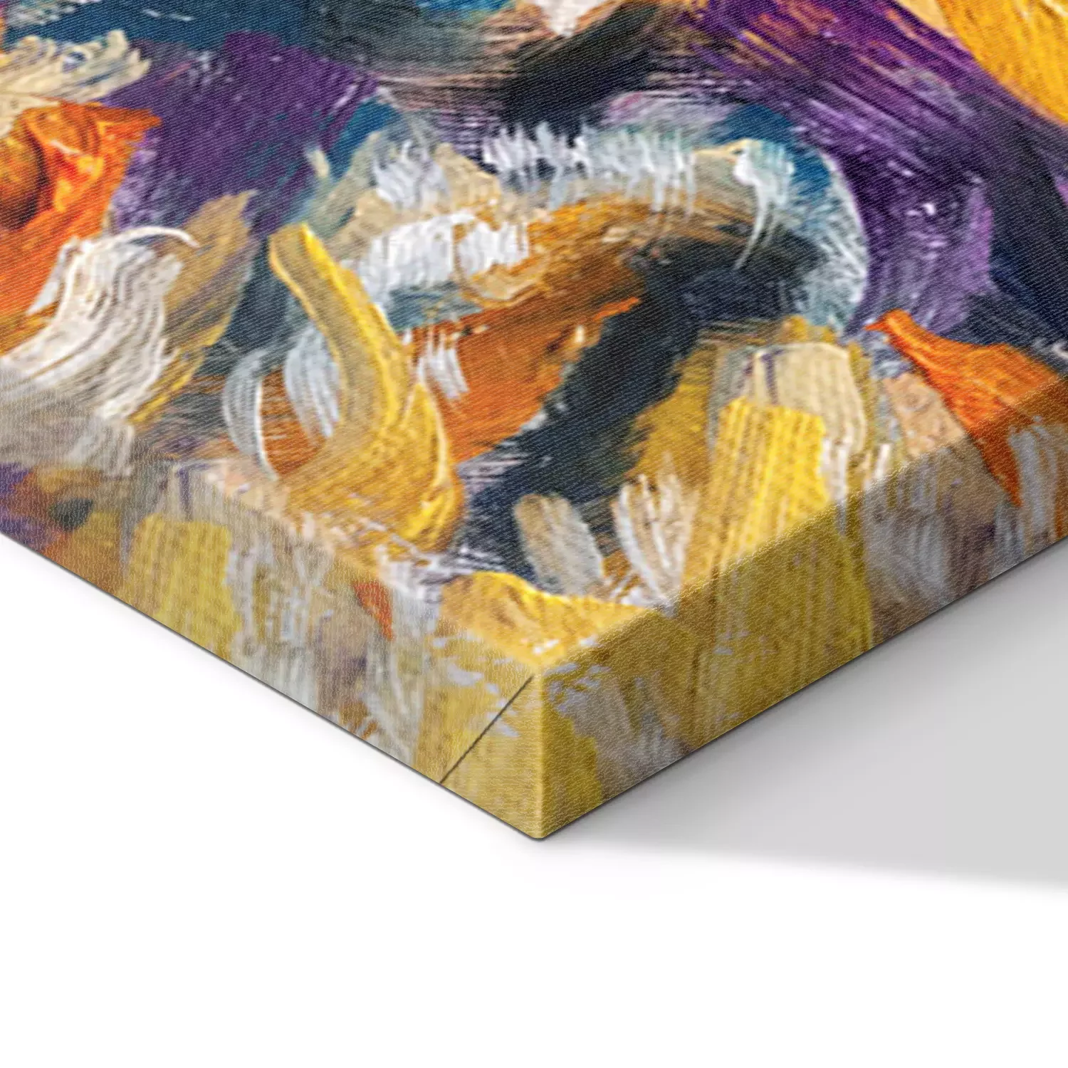Das Motiv wird auf eine qualitativ hochwertige Leinwand gedruckt, die auf einen Blendrahmen gezogen wird. Da der Aufdruck die Seitenkanten bedeckt, muss das Bild nicht zusätzlich eingerahmt werden. Wir empfehlen außerdem Kompositionen aus mehreren Bildern, die ein harmonisches Ganzes bilden.