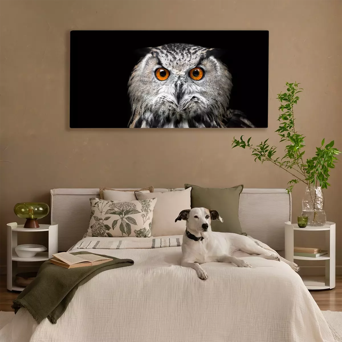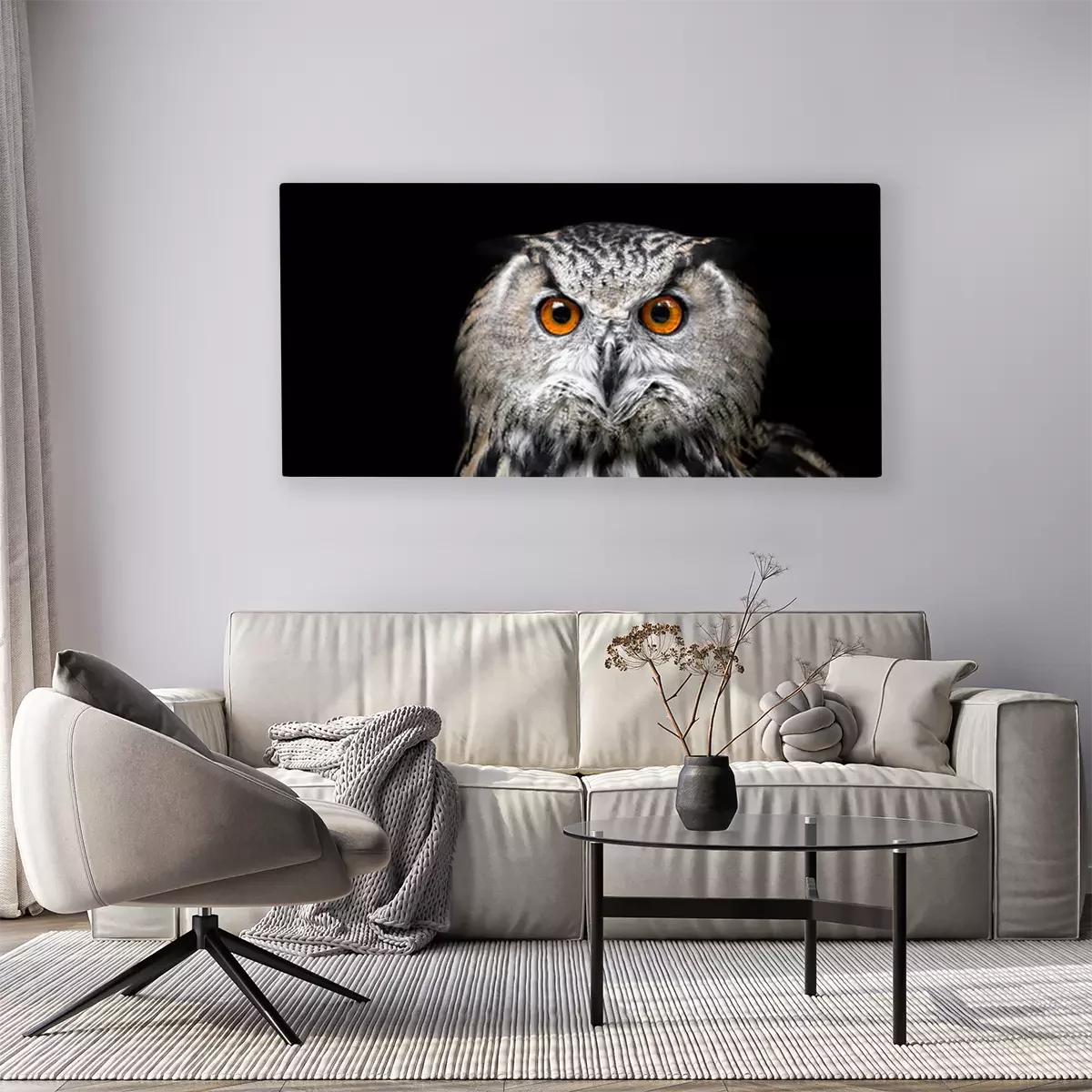 Bild: Eulenkopf auf schwarzem Hintergrund