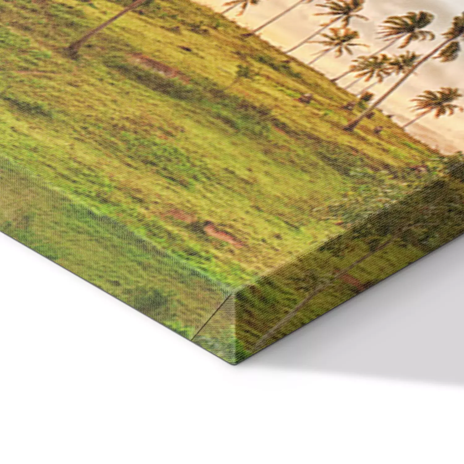 Das Motiv wird auf eine qualitativ hochwertige Leinwand gedruckt, die auf einen Blendrahmen gezogen wird. Da der Aufdruck die Seitenkanten bedeckt, muss das Bild nicht zusätzlich eingerahmt werden. Wir empfehlen außerdem Kompositionen aus mehreren Bildern, die ein harmonisches Ganzes bilden.