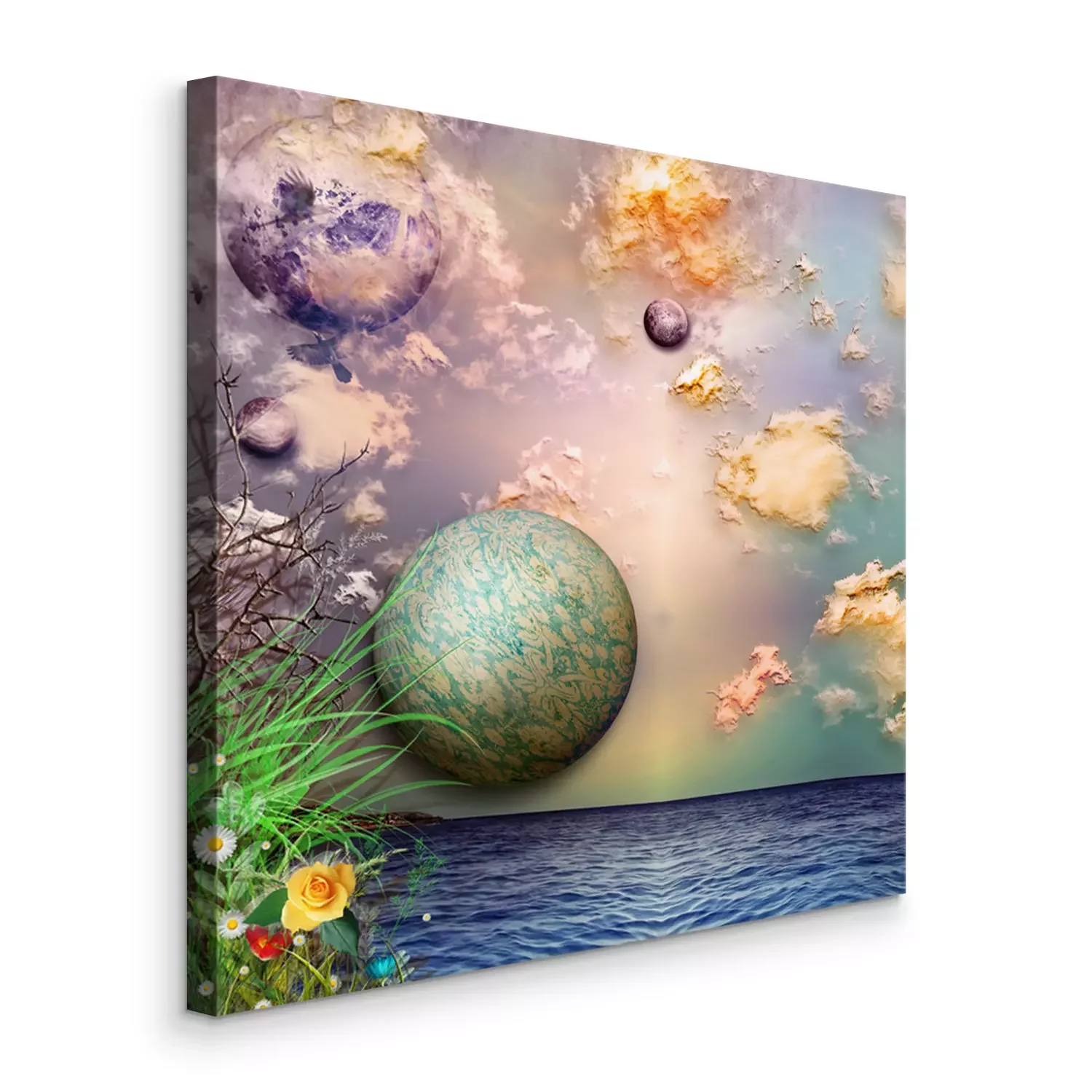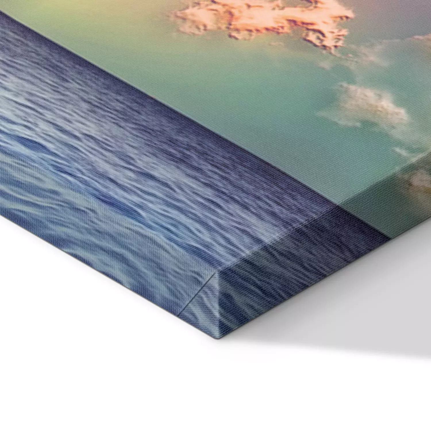 Das Motiv wird auf eine qualitativ hochwertige Leinwand gedruckt, die auf einen Blendrahmen gezogen wird. Da der Aufdruck die Seitenkanten bedeckt, muss das Bild nicht zusätzlich eingerahmt werden. Wir empfehlen außerdem Kompositionen aus mehreren Bildern, die ein harmonisches Ganzes bilden.