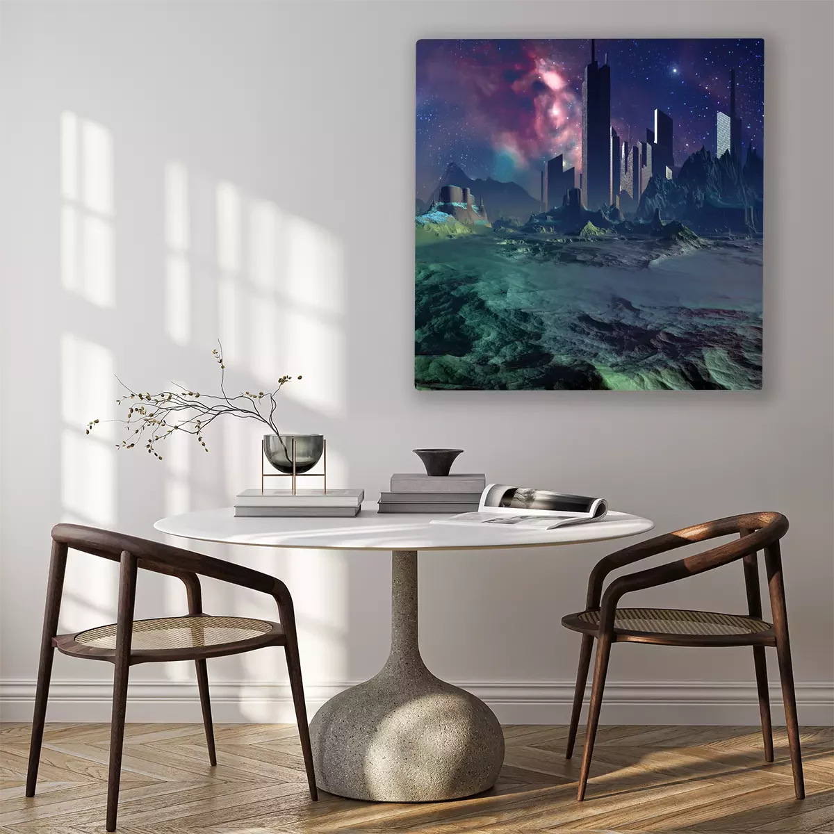 Das Motiv wird auf eine qualitativ hochwertige Leinwand gedruckt, die auf einen Blendrahmen gezogen wird. Da der Aufdruck die Seitenkanten bedeckt, muss das Bild nicht zusätzlich eingerahmt werden. Wir empfehlen außerdem Kompositionen aus mehreren Bildern, die ein harmonisches Ganzes bilden.